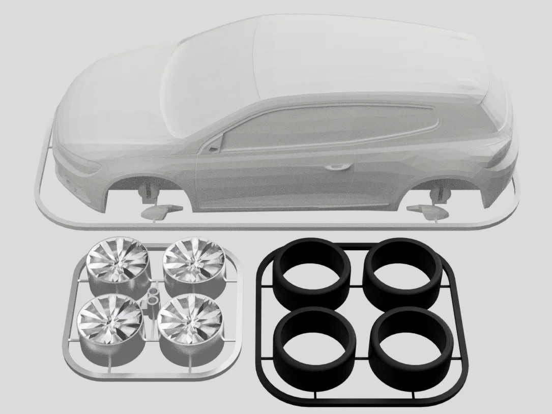 Mô hình xe VW Scirocco dạng kit card cực chất với tỷ lệ 1:24. Thiết kế chi tiết, không cần support, lắp ráp dễ dàng, có hỗ trợ file cho máy in đa màu (AMS/MMU).