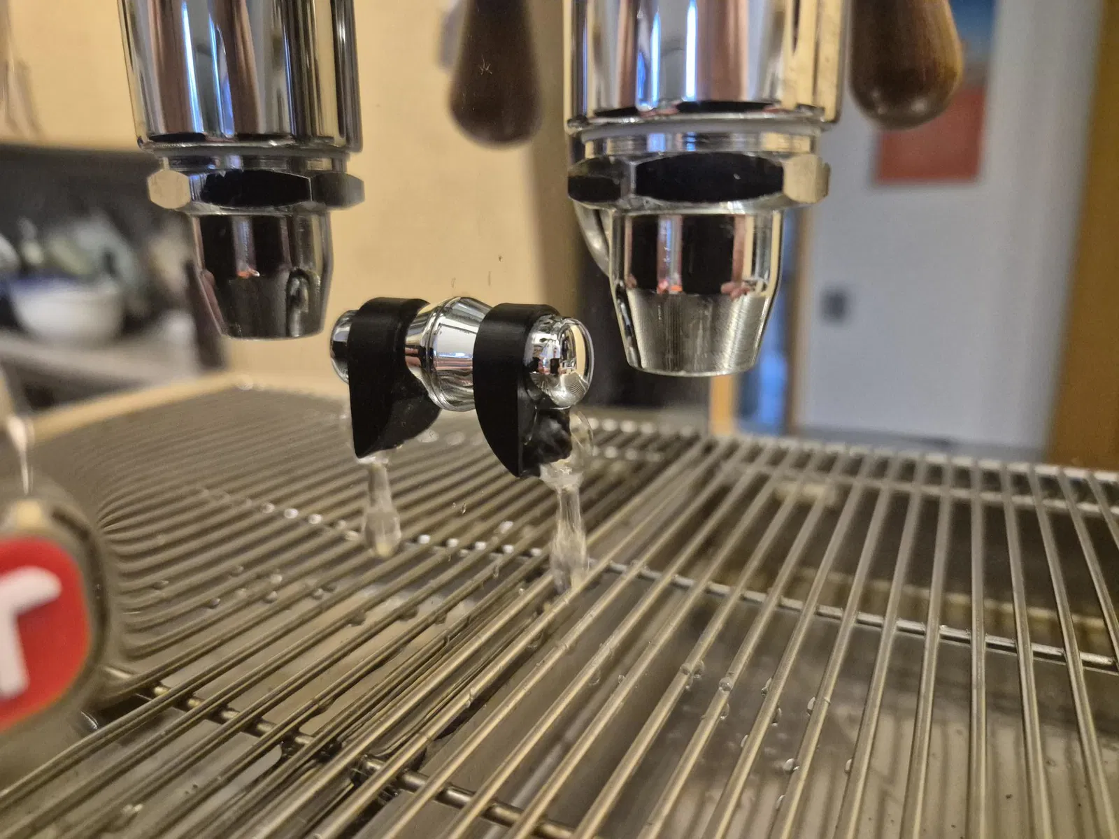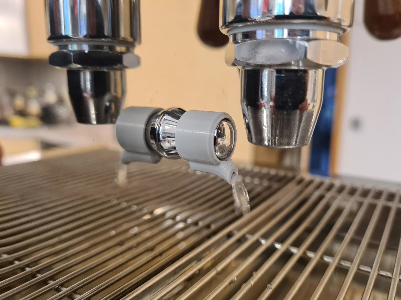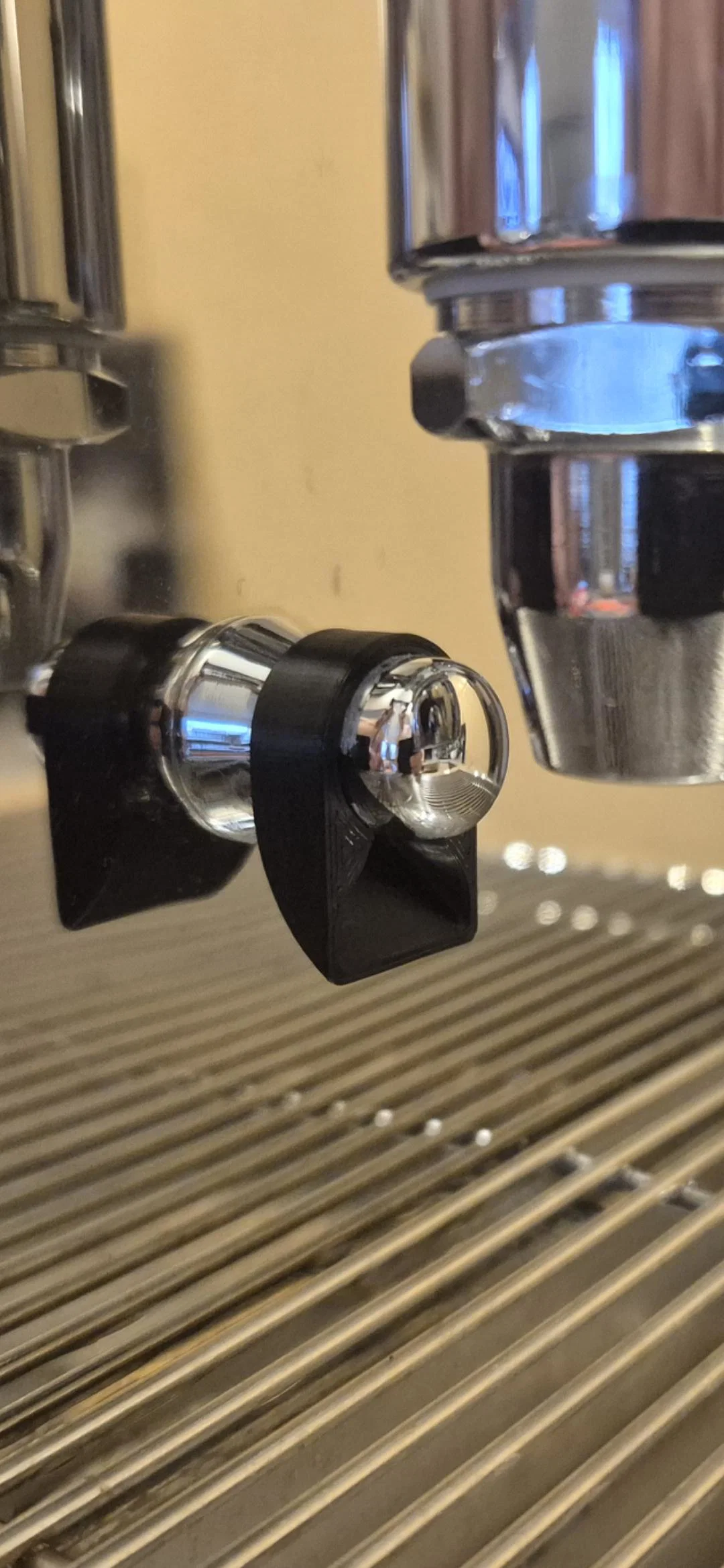 Để lắp đặt, bạn hãy tháo đường ống thoát nước phía sau của cụm E61 Grouphead ra. Vòi phun phải được đặt ở vị trí 6 giờ. Bộ chuyển đổi này có thiết kế rất khít. Mình đã in nó bằng nhựa PETG, nhưng có lẽ dùng ABS sẽ bền hơn về lâu dài. Nếu phiên bản PETG gặp vấn đề gì, mình sẽ cập nhật lại sau. Do sau một thời gian sử dụng, phần đầu vòi cũ của mình bị biến dạng vì nhiệt, mình đã thiết kế một phiên bản mới hoạt động giống như một tấm chắn (baffle plate). Vấn đề biến dạng này có lẽ sẽ không xảy ra ở phiên bản mới này. Ngoài ra, mình nhận thấy thiết kế V2 giúp ngăn nước bắn vào máy Bianca tốt hơn nhiều. Mình vẫn để lại phiên bản cũ ở đây, nhưng khuyến khích các bạn nên dùng bản mới. Phiên bản V2 là bản màu đen trong hình.