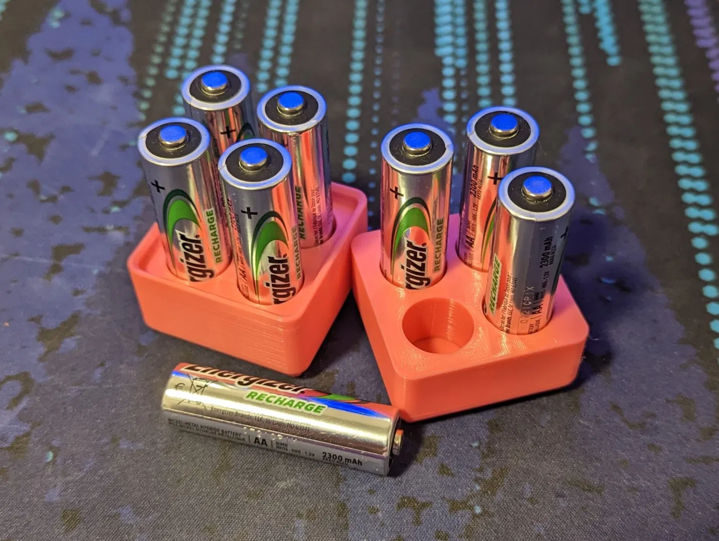 - 24/08/2023 - Thay thế khay AAAA do lỗ hơi to. Thêm khay cho pin C và D theo yêu cầu. Pin C chỉ có hai kích thước khay do kích thước pin. Pin D chỉ có khay 1x1 chứa một viên để đồng bộ hóa.