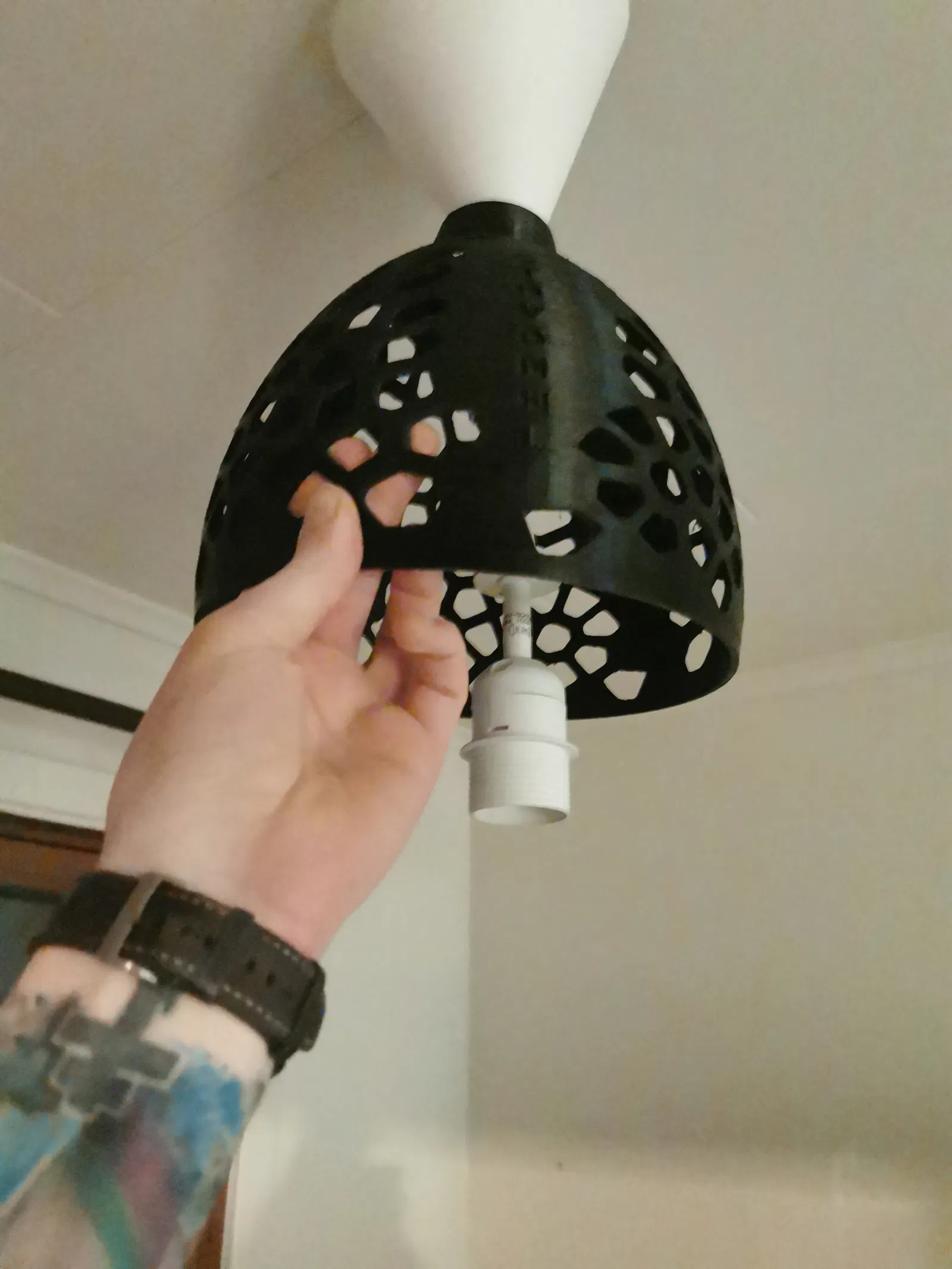 Mẫu chụp đèn 3D 3 mảnh đa năng, thiết kế thông minh không cần support. Phù hợp cho nhiều loại dây treo đèn E27, với tùy chọn bản trơn tối giản hoặc họa tiết Voronoi độc đáo. In dễ dàng, lắp ráp nhanh chóng, cực kỳ tinh tế cho không gian nhà bạn.