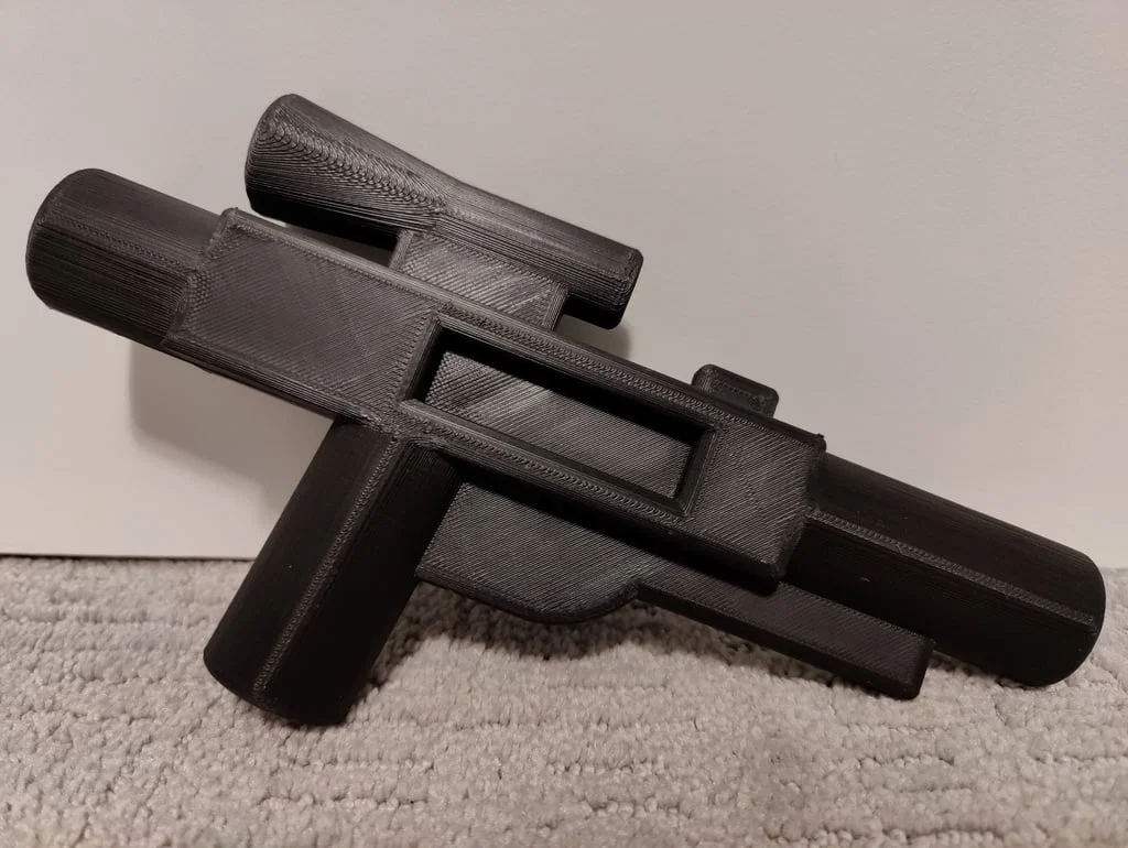 Mô hình súng Lego Blaster được phóng to gấp 10 lần. Hầu hết các thông số đo lường đều chính xác, nhưng vẫn có một vài chi tiết chưa chuẩn. Mình khuyên bạn nên in phiên bản đã được tách rời rồi dán hai phần lại với nhau để có kết quả tốt nhất.