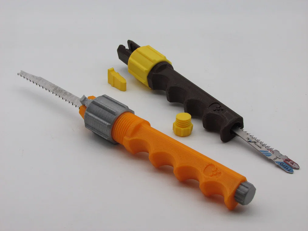 Tay cầm cưa lọng (Jig saw handle) thiết kế thông minh với ngăn chứa tích hợp cho hơn 8 lưỡi cưa. Sản phẩm in 3D dễ dàng, có nắp vặn an toàn, vừa vặn với tay người dùng và tương thích tốt với lưỡi cưa Bosch.