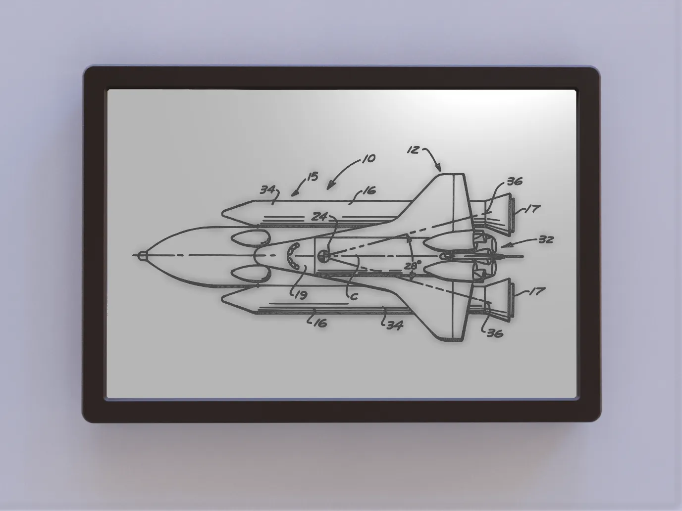 Màn hình nghệ thuật 2D cho một bản vẽ bằng sáng chế tàu con thoi.