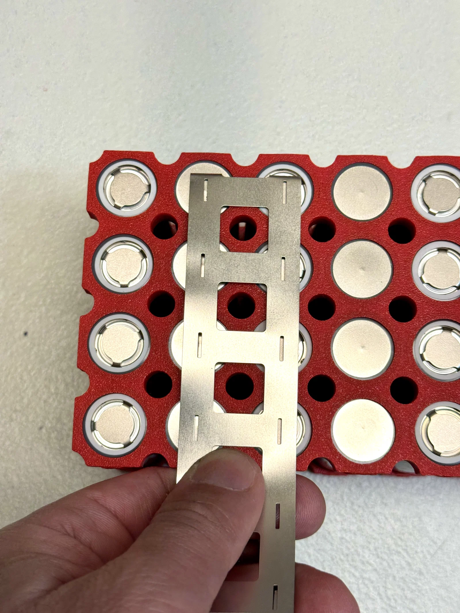 - Độ bền cơ học: Khung có chiều dài khoảng 300mm và chiều cao 8mm, đủ mỏng để tiết kiệm diện tích nhưng vẫn đảm bảo giữ chặt các cell pin.