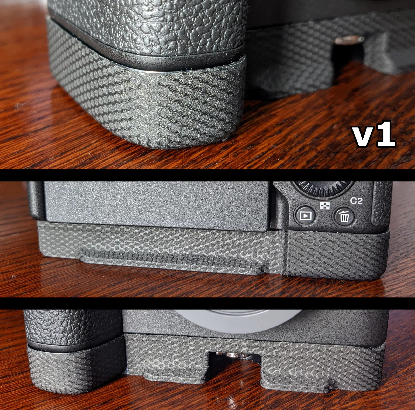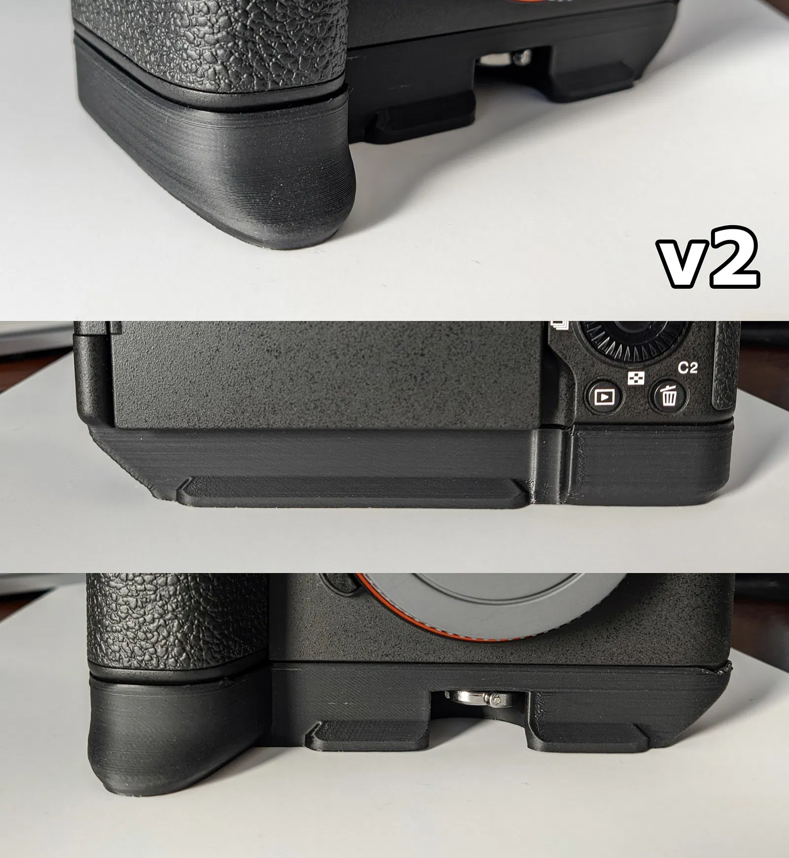 Tôi đã phải trải qua hơn 30 bản thử nghiệm mới có được độ khớp hoàn hảo như hiện tại. Grip bám chặt vào đáy máy ảnh cực kỳ chắc chắn. Tuy nhiên, xin lưu ý rằng kết quả thực tế có thể khác biệt đôi chút tùy thuộc vào máy in và loại nhựa mà bạn sử dụng.