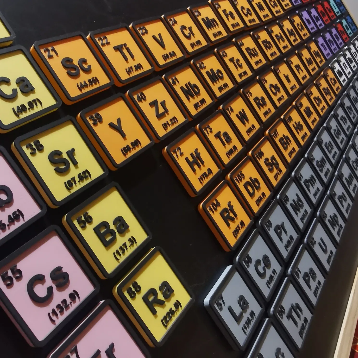 Bộ bảng tuần hoàn hóa học đầy đủ, đẹp mắt và có tính ứng dụng cao. Dễ dàng lắp ghép, tùy chỉnh ký hiệu nguyên tố và nam châm, lý tưởng để trang trí hoặc học tập.