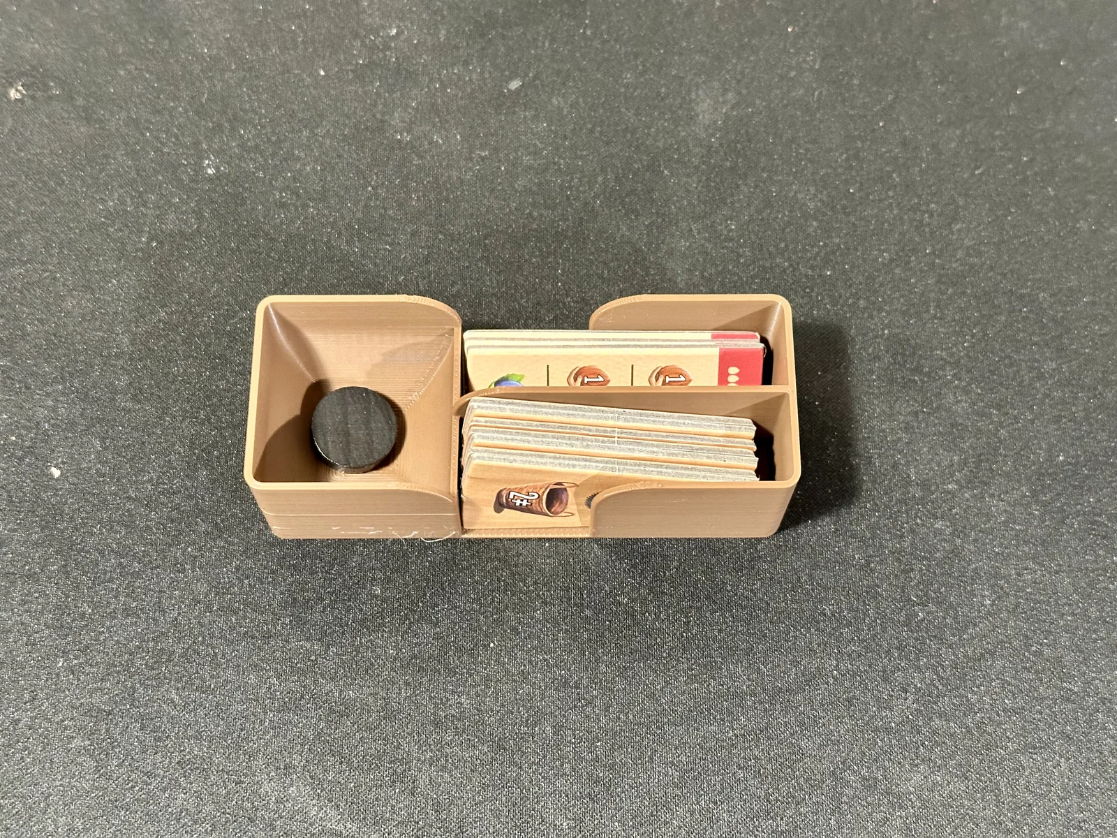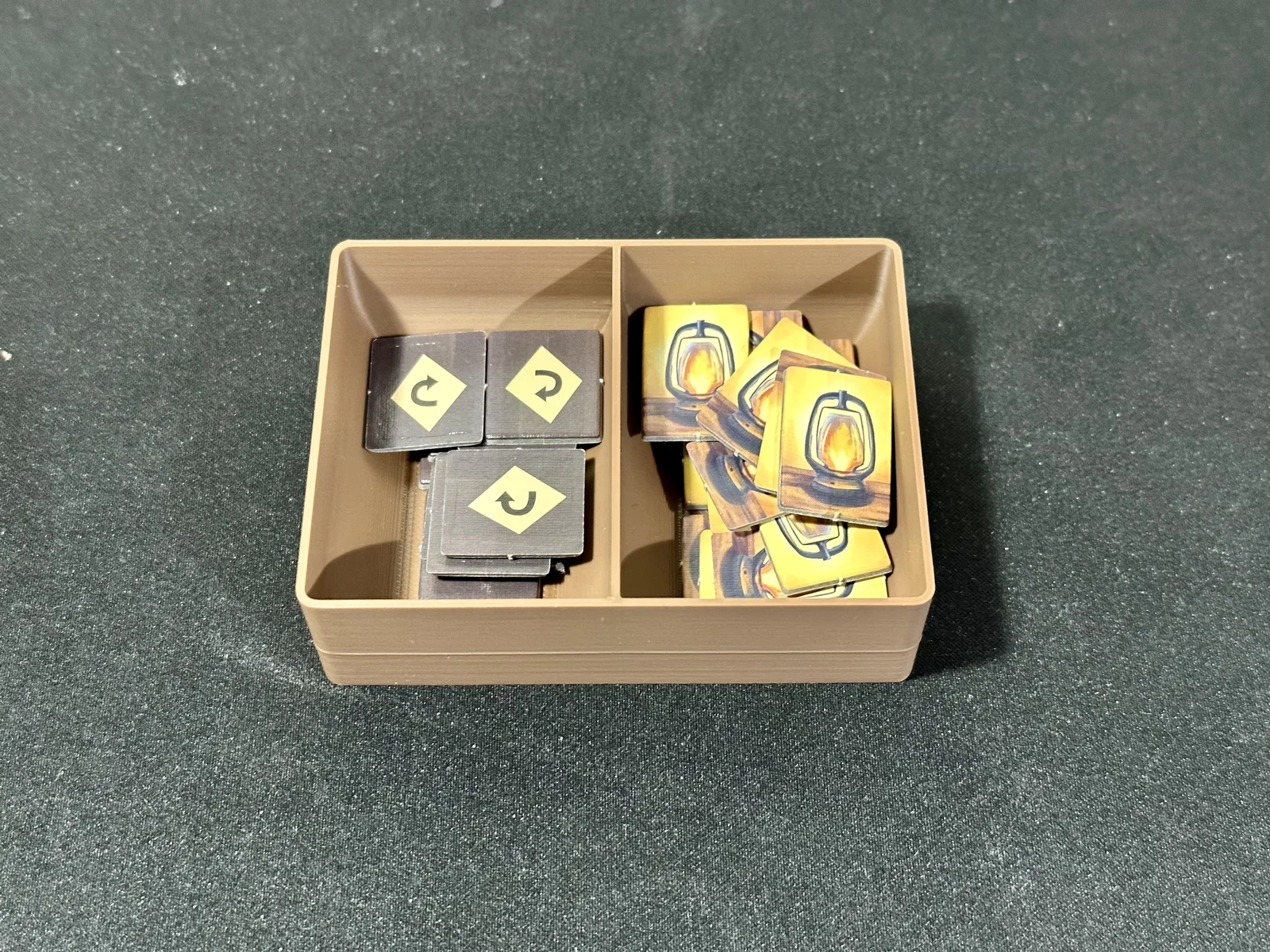 Đây là bản remix từ mẫu khay của Patella dành cho board game Woodcraft. Các thiết kế gốc của tác giả có những góc vuông khiến máy in của mình bị cong vênh khá nhiều. Ngoài ra, mình cũng không thích việc phải dùng thêm nhiều miếng đệm và để thừa các khoảng trống trong hộp.