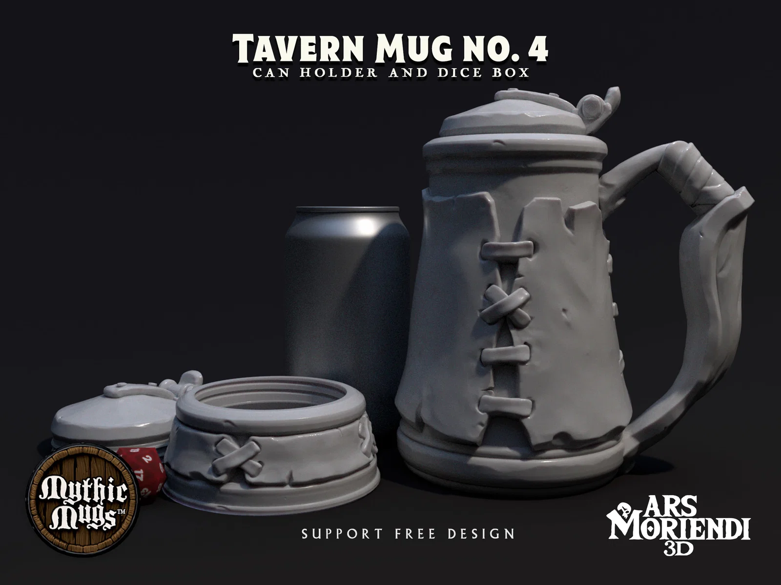 Mythic Mugs là dòng cốc giả tưởng in 3D dành cho game thủ tabletop, dân chơi cosplay và người sưu tầm. Mẫu số 4 hỗ trợ in không cần support và tương thích với nhiều kích cỡ lon nước nhờ miếng lót tùy chỉnh.