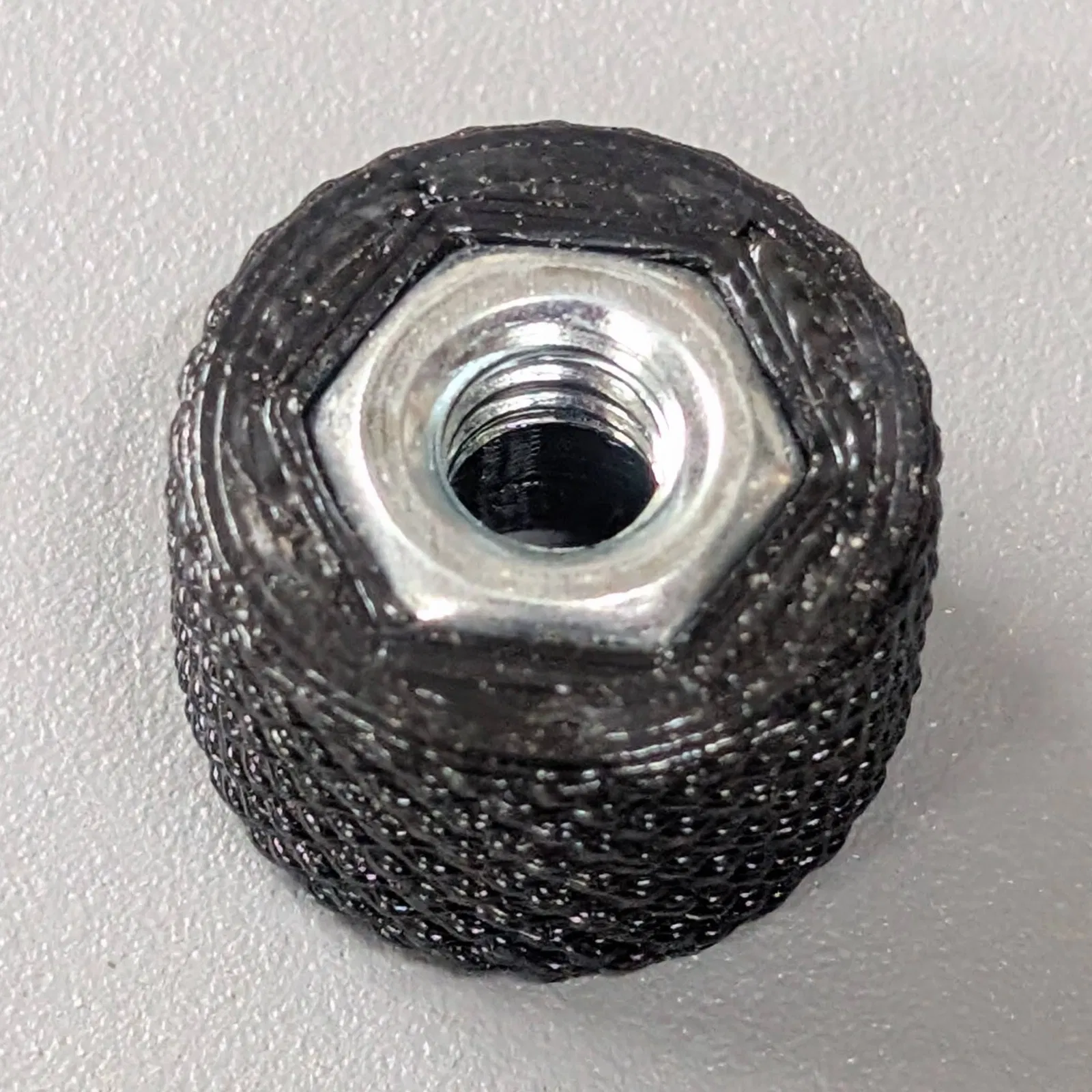 Phần núm vặn được thiết kế với dung sai rất khít để bạn có thể ép đai ốc (nut) vào bên trong. Bạn có thể dùng búa cao su để gõ nhẹ hoặc dùng bu-lông 1/4" để kéo đai ốc vào khớp.