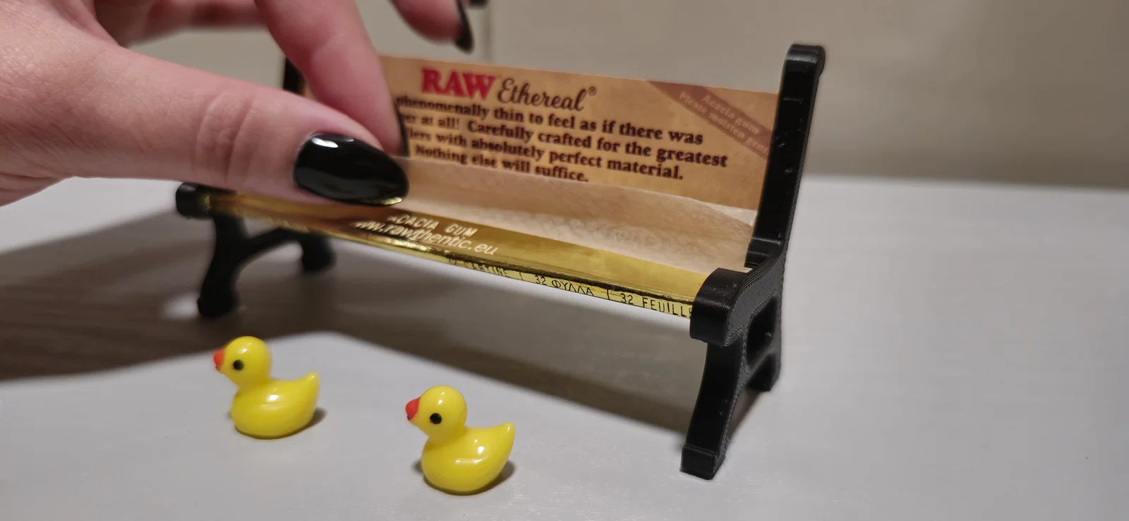 Những chiếc giá đỡ in 3D hình băng ghế này giúp xấp giấy cuốn RAW của bạn trở nên nổi bật và thú vị hơn trên bàn làm việc. Hiện có 3 kiểu dáng để lựa chọn, vừa là vật trang trí độc đáo, vừa là giá đỡ tiện dụng cho phụ kiện của bạn.
