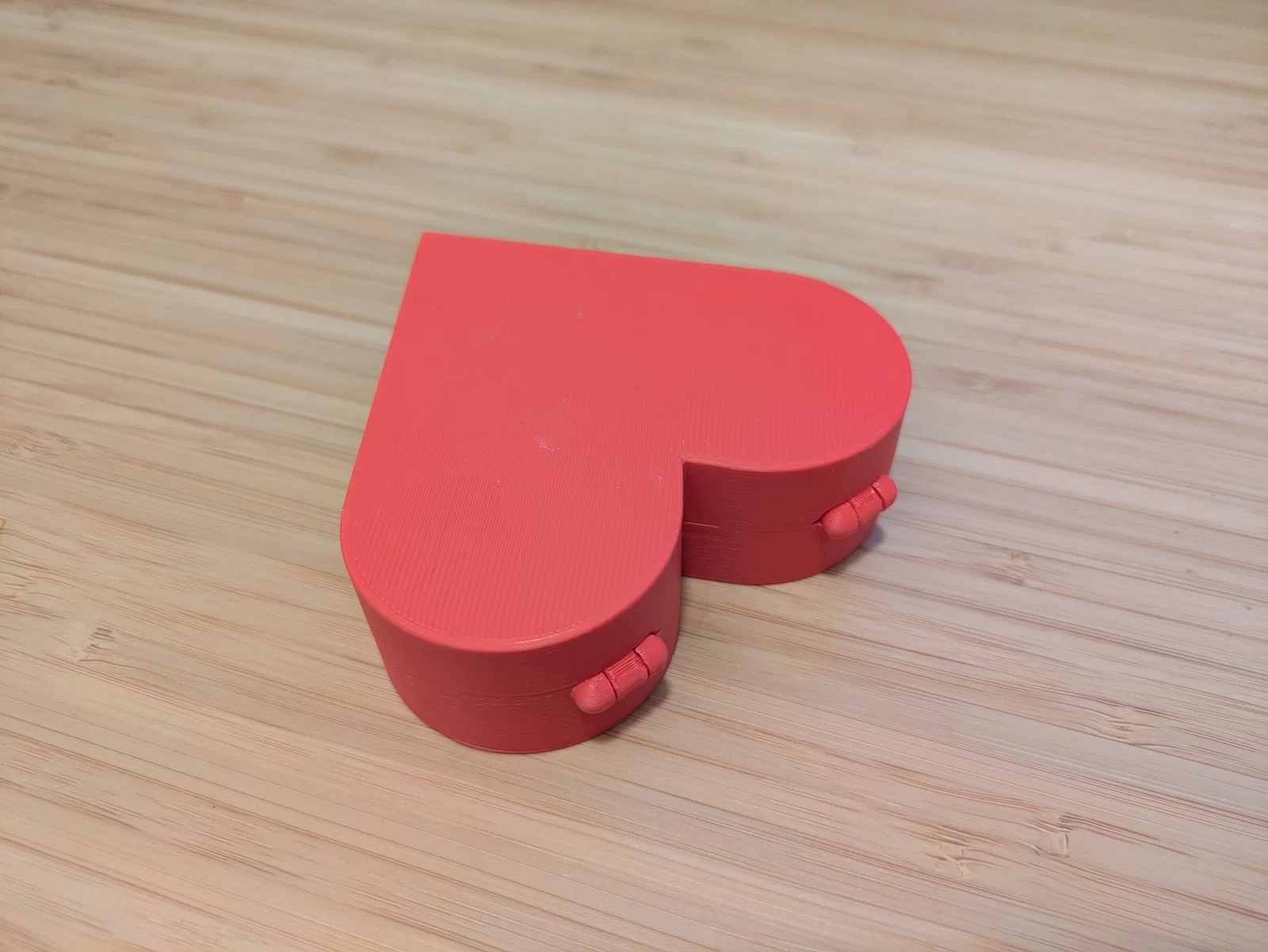 Chiếc hộp quà hình trái tim cực xinh xắn để dành tặng người thương của bạn. Đây là thiết kế in một lần (print-in-place), không cần lắp ráp gì cả. Nắp hộp có chốt khóa snap lock chắc chắn khi đóng lại. Bản lề được thiết kế nhỏ gọn, tinh tế với độ hở chỉ 0.3mm giúp khớp nối rất khít.