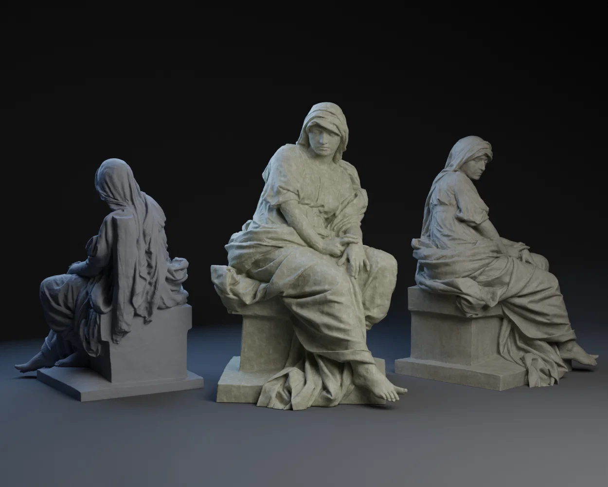 Chiêm ngưỡng tác phẩm điêu khắc đầy cảm xúc của Antoni Pleszowski. Bức tượng khắc họa người phụ nữ với vẻ trầm tư bên nấm mộ, mang đậm nét nghệ thuật cổ điển với sự kết hợp tinh tế giữa vẻ đẹp tự nhiên, tĩnh lặng và nghiêm trang.