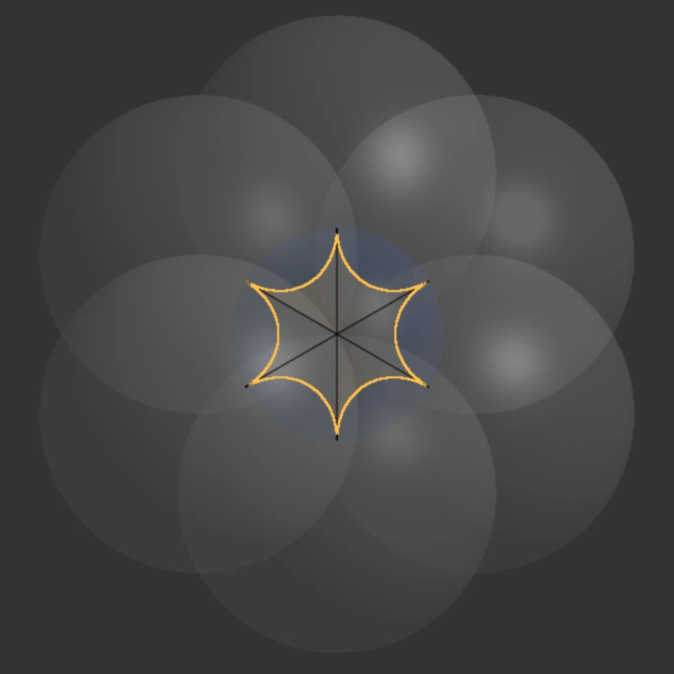 Tôi tạo ra nó trong lúc đang thử nghiệm với phần mềm CAD để khám phá hình học hyperbolic. Nó thể hiện một khối lập phương trong không gian hyperbolic với độ cong âm trên tất cả sáu mặt.