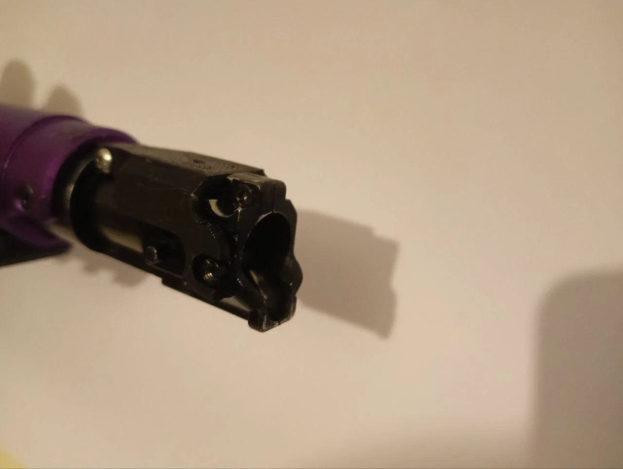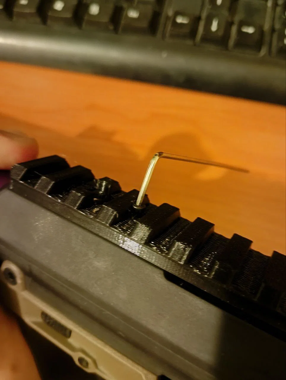 Sau đó bạn có thể lắp ráp lại súng như bình thường. Cuối cùng, gắn vít chỉnh vào từ lỗ đã khoan.