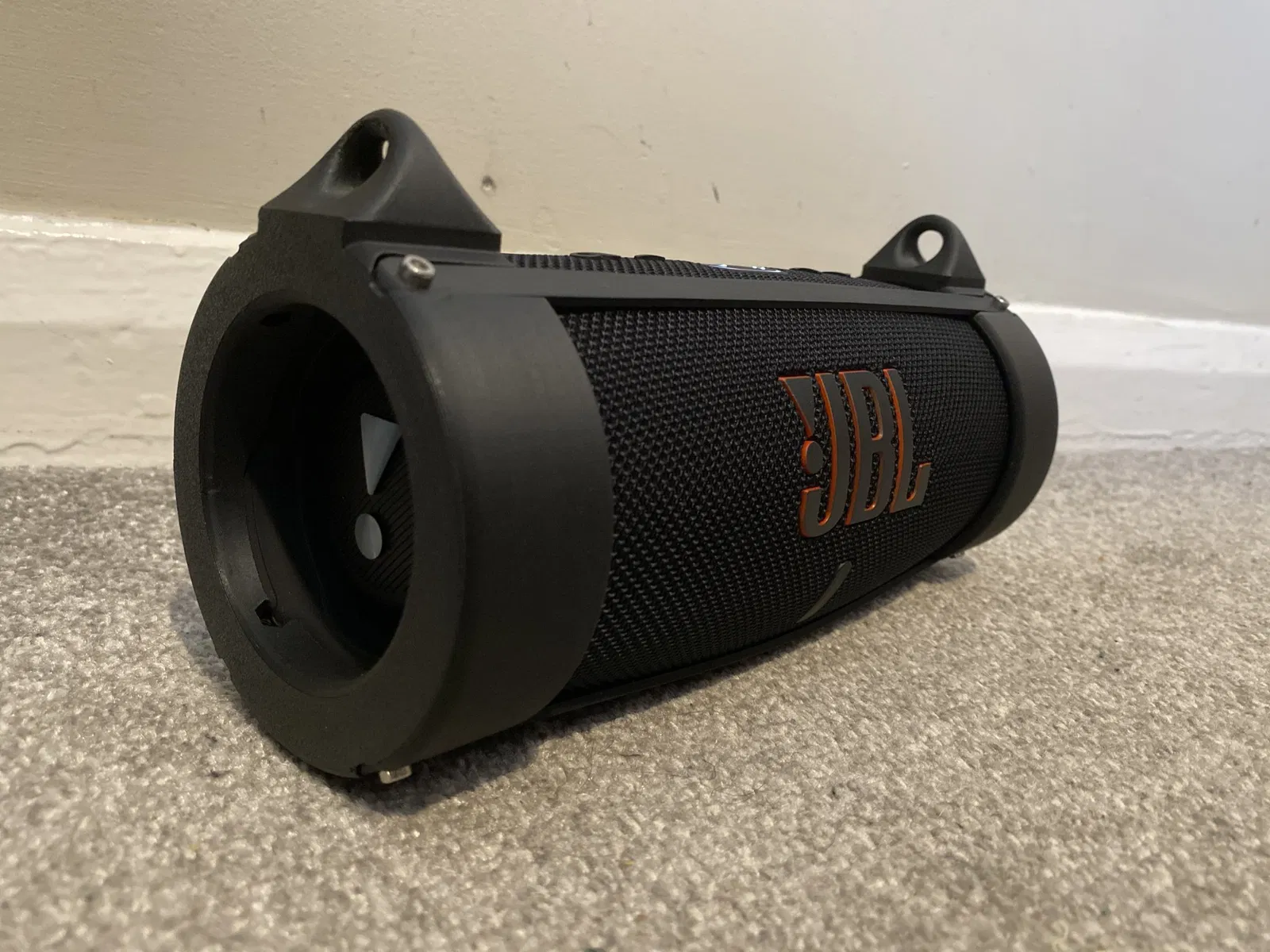 Vỏ này bảo vệ loa và cũng cho phép bạn gắn một dây đeo với hai lỗ ở mỗi đầu. Bạn có thể sử dụng dây đeo vai từ mẫu Xtreme với vỏ để dễ dàng mang theo.