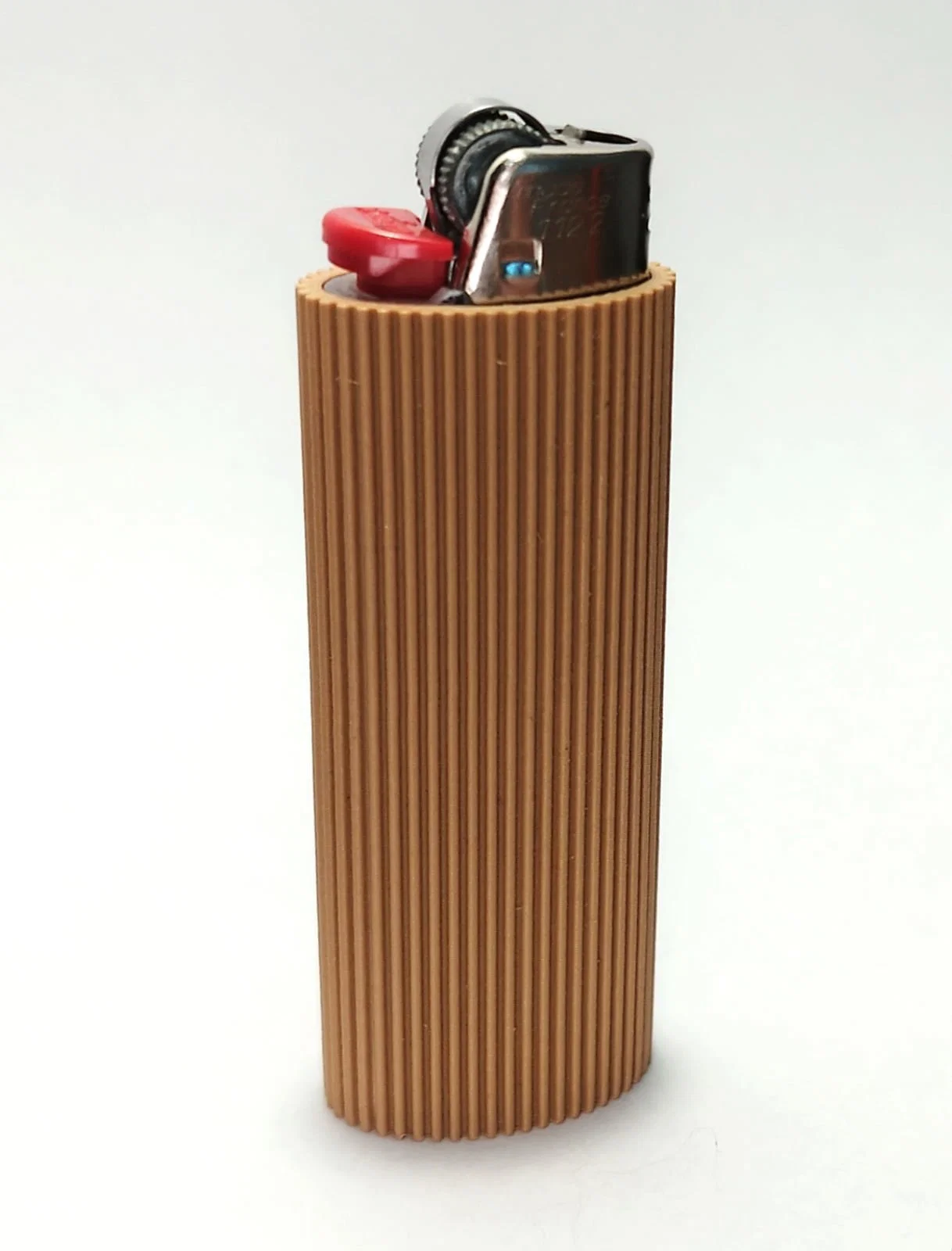 Mình vừa thiết kế một chiếc vỏ bọc bật lửa (lighter case). Hiện tại mình có hai phiên bản: một bản với các đường gân thẳng và một bản có các đường gân lượn sóng. Những chiếc vỏ này giúp bạn cầm bật lửa chắc tay hơn nhiều. Với mẫu lượn sóng, bật lửa sẽ không bị xê dịch hay kêu lọc cọc bên trong, cả hai mẫu đều cho cảm giác cầm nắm rất tốt. Mình có thiết kế thêm một lỗ ở phía dưới để các bạn dễ dàng tháo lắp hoặc thay thế vỏ bọc hơn.
