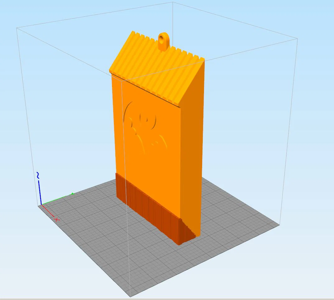 Mẫu mô hình này có 2 phiên bản để các bạn lựa chọn in ấn. Một phiên bản in nguyên khối, cần đặt đứng và sử dụng support (xem hình minh họa), và một phiên bản chia làm hai mảnh giúp giảm yêu cầu về chiều cao và hạn chế support (xem hình minh họa). Lưu ý: Bản in nguyên khối sẽ thấp hơn 20mm so với bản ghép từ hai mảnh.