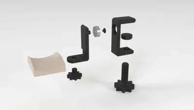Cập nhật v2: đã thêm các miếng đệm TPU để in và tăng độ bám! Đã bổ sung thêm thanh gia cố giữa góc chân đế của phần thân kẹp chính. Bạn có thể sử dụng vòng bi trượt 608 tiêu chuẩn hoặc sử dụng vòng bi 608 in-place (in trực tiếp) mà mình đã đính kèm trong các phiên bản mô hình. Linh kiện phần cứng liệt kê ở bên dưới chỉ là ví dụ thôi, mình cũng chưa kiểm tra xem giá cả có hợp lý không. Bất kỳ loại vòng bi 608 nào cũng dùng được, và bản in-place hoạt động rất tốt cho ứng dụng này. Hãy gắn vòng bi vào giá đỡ, lắp cánh tay xoay vào vòng bi, rồi gắn nắp chặn vào trụ của cánh tay xoay là xong nhé.