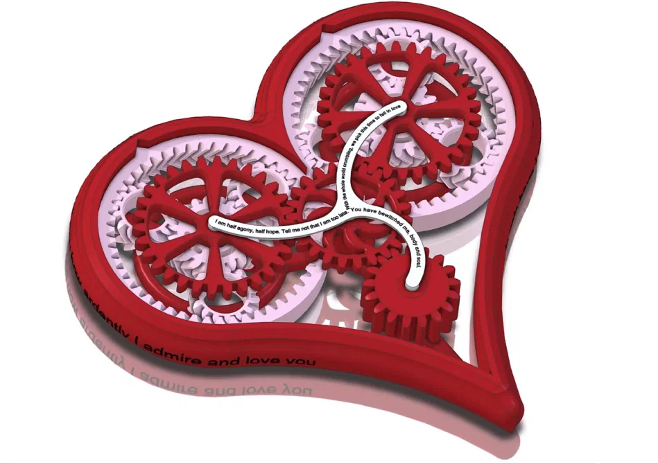 Mẫu mô hình trái tim cơ khí độc đáo với các bánh răng lồng vào nhau mang phong cách steampunk. Đây là món quà hoàn hảo cho ngày Lễ Tình nhân, vừa mang tính thẩm mỹ cao lại vừa thể hiện sự kết hợp thú vị giữa kỹ thuật và nghệ thuật in 3D.