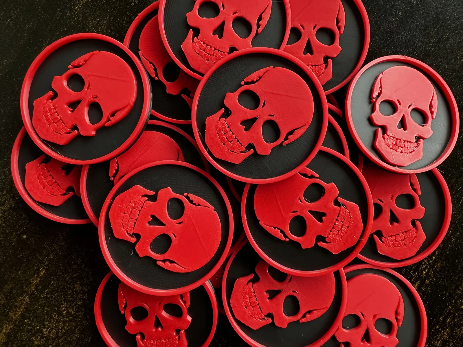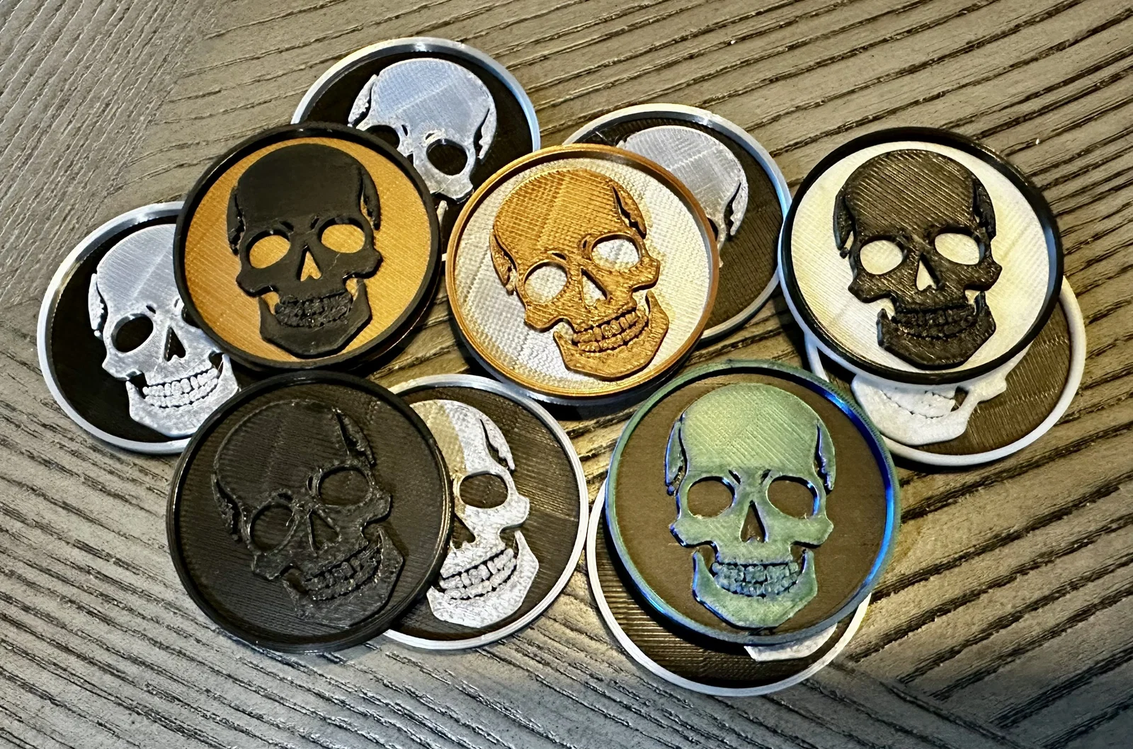 Mẫu đồng xu đầu lâu đơn giản. Bạn có thể tùy chỉnh mặt sau trong phần mềm cắt lớp (slicer) nếu muốn thêm chữ. Phiên bản này đã được cập nhật thêm file hỗ trợ AMS để in nhiều màu sắc dễ dàng hơn.