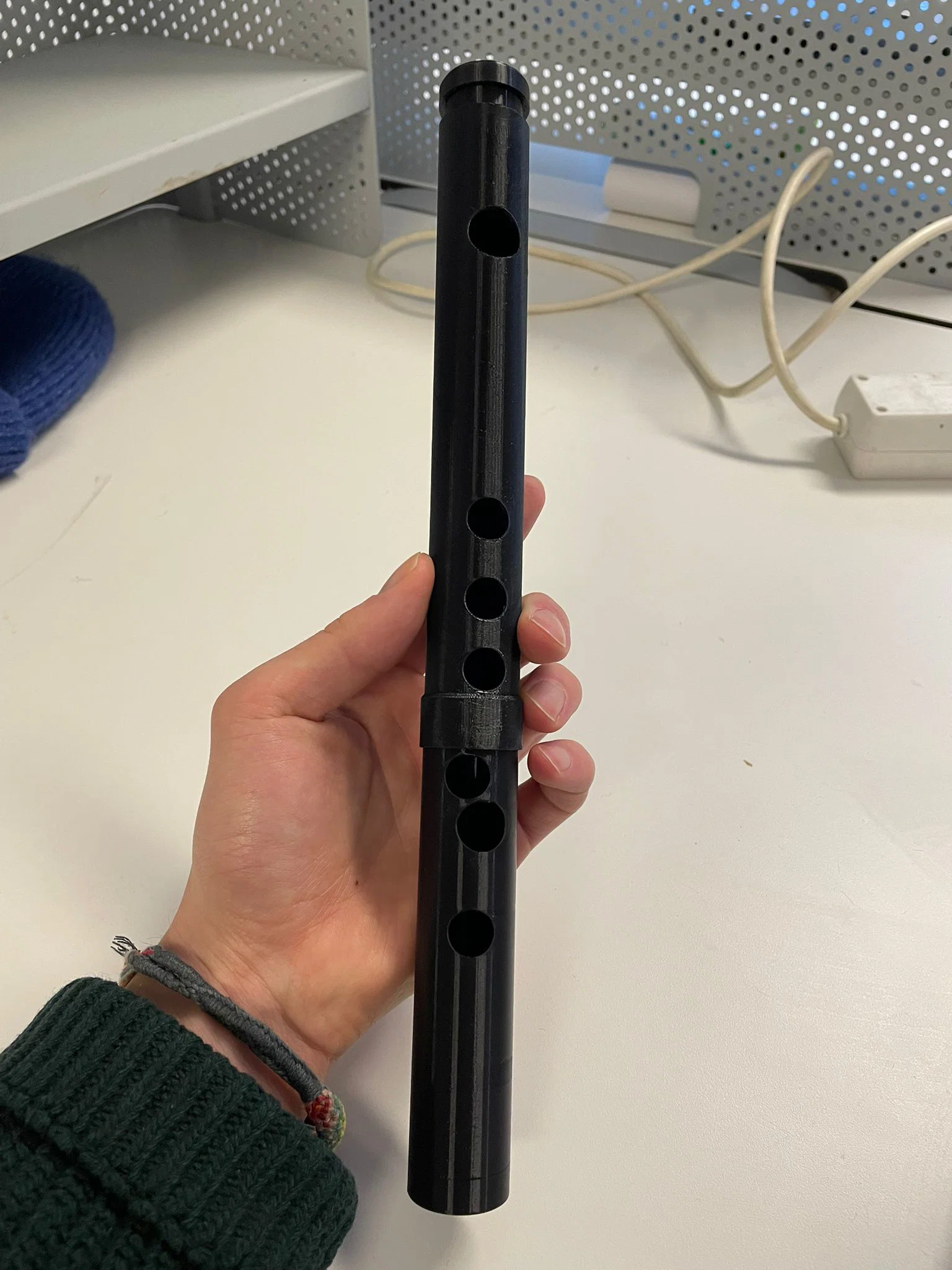 Khi in, thường thì in nghiêng và thêm một vài phần support sẽ giúp ống sáo mịn và chắc chắn hơn so với việc dựng đứng ống lên.