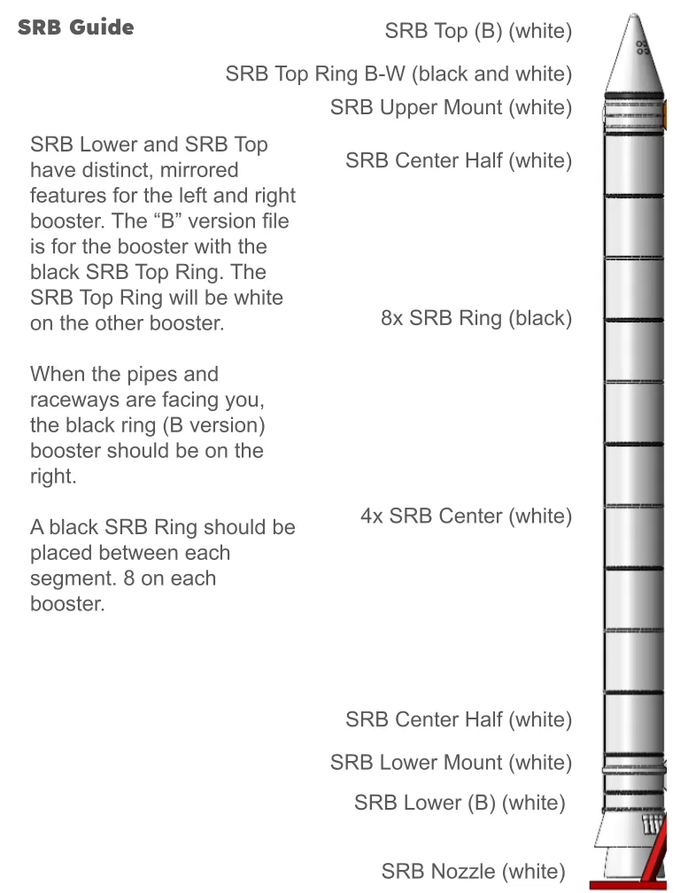 Space Launch System (SLS) là dòng tên lửa đẩy siêu nặng sử dụng một lần của Mỹ do NASA chế tạo. Là phương tiện phóng chủ lực cho chương trình đổ bộ Mặt Trăng Artemis, SLS được thiết kế để đưa tàu vũ trụ Orion có phi hành đoàn lên quỹ đạo hướng tới Mặt Trăng. Vụ phóng SLS đầu tiên (và duy nhất tính đến nay) là sứ mệnh không người lái Artemis I, diễn ra vào ngày 16 tháng 11 năm 2022. ~ Wikipedia intro. Mẫu mô hình này đã được in thành công ở tỉ lệ 1:110 mà không gặp vấn đề gì và không cần dùng đến vật liệu chống đỡ (support). Các bộ phận SRB gồm nhiều mảnh nhỏ cần được xếp chồng theo đúng thứ tự như hướng dẫn in và lắp ráp. Mọi người nhớ kiểm tra kỹ các chi tiết đối xứng và vòng định hướng màu sắc đã đặt đúng vị trí trước khi dán keo hoàn thiện nhé. Chúc mọi người in ấn vui vẻ, đừng quên nhấn like và chia sẻ thành quả của mình nha!