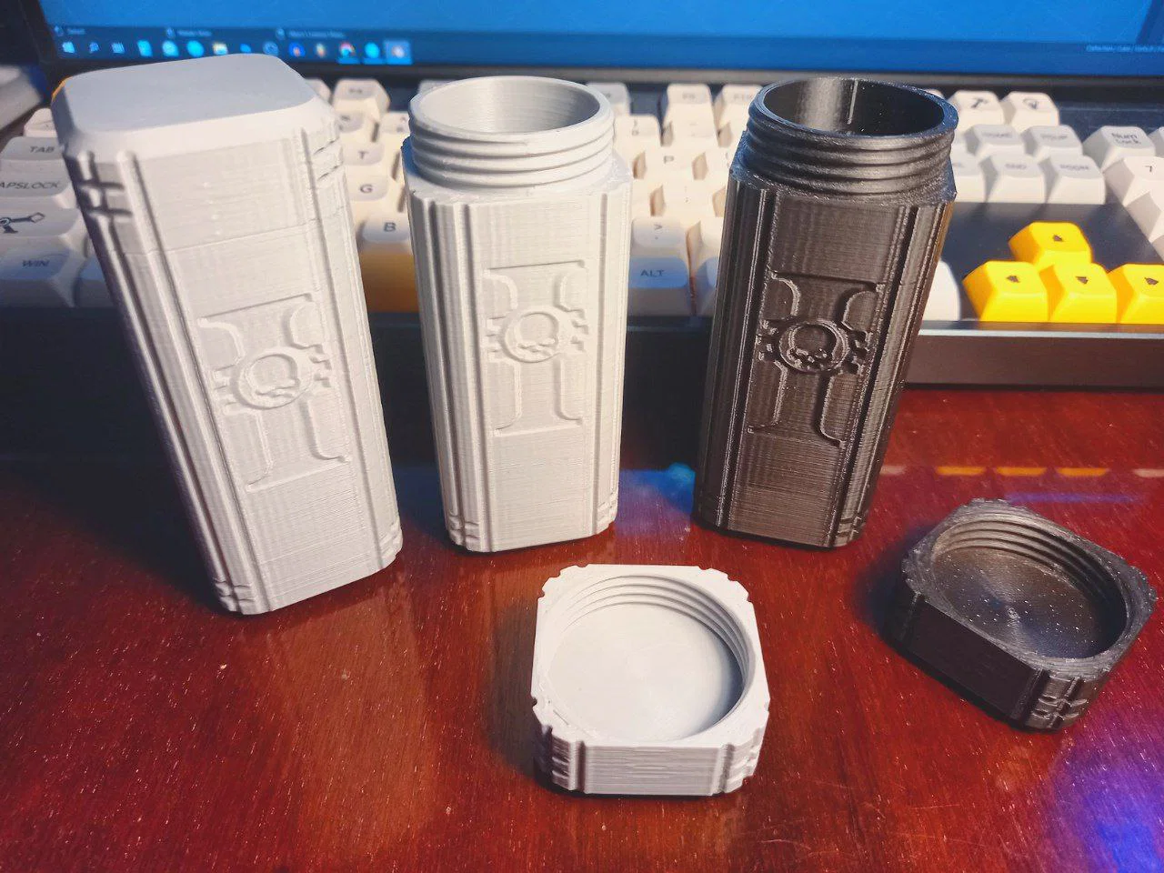 Nếu bạn là một người hâm mộ cuồng nhiệt của vũ trụ Warhammer 40k, đặc biệt là phe Inquisition, thì mẫu hộp đựng (container) này chắc chắn là món đồ không thể thiếu trên bàn làm việc của bạn. Với thiết kế lấy cảm hứng từ biểu tượng rosette đặc trưng, chiếc hộp này không chỉ là một vật dụng lưu trữ đơn thuần mà còn mang đậm hơi thở của tương lai đen tối. Sản phẩm được thiết kế với thân hộp hình trụ vững chãi, các đường rãnh trang trí tinh tế và nắp vặn chắc chắn, giúp bảo vệ an toàn các vật phẩm nhỏ bên trong.