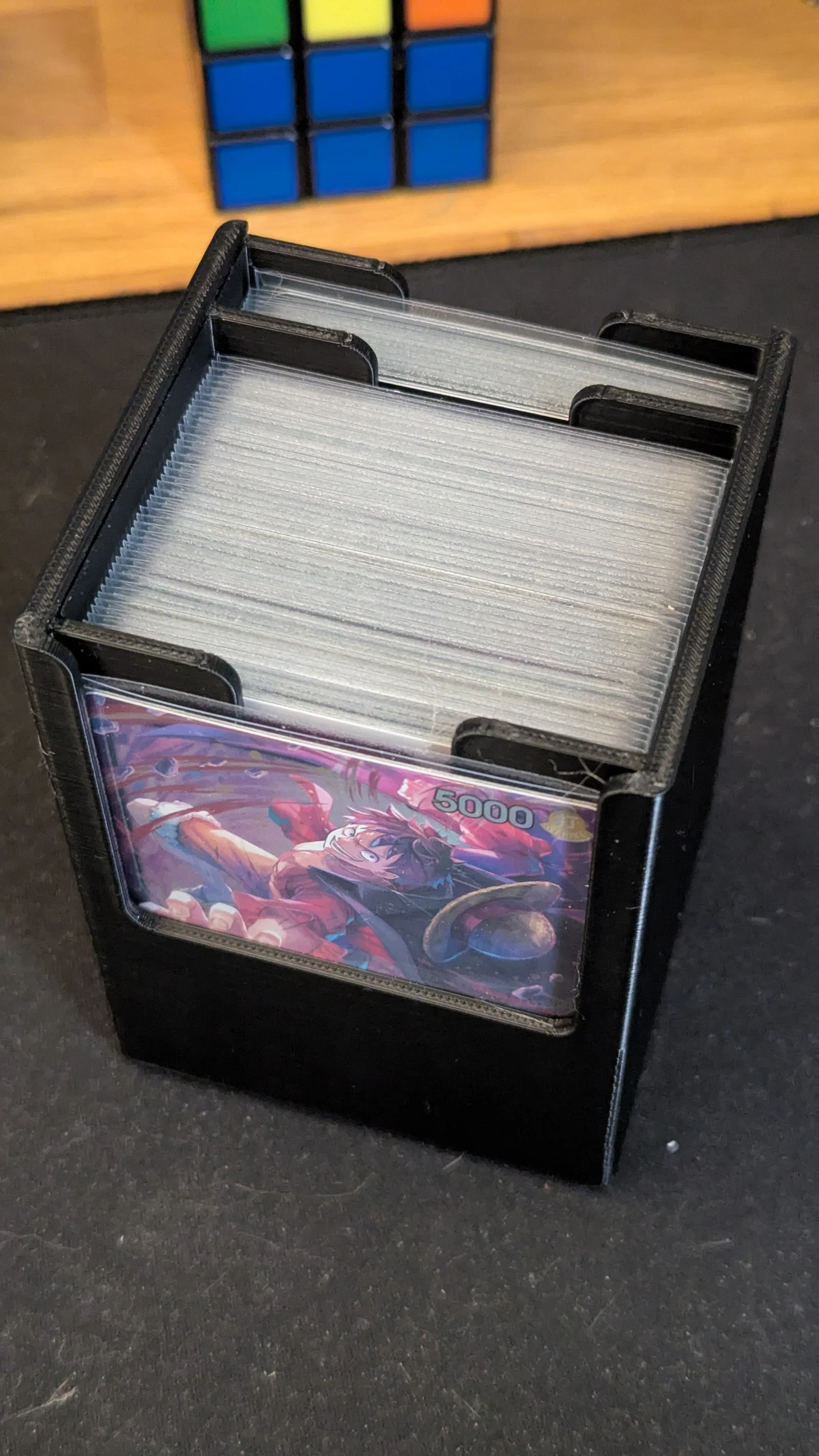 Nếu bạn là một fan cứng của tựa game thẻ bài One Piece TCG và đang đau đầu vì không tìm được hộp đựng ưng ý cho bộ bài đã được bọc hai lớp bảo vệ (double sleeves), thì đây chính là giải pháp dành cho bạn. Mẫu hộp đựng này được thiết kế đặc biệt để tối ưu hóa không gian, giúp bạn cất giữ bộ sưu tập thẻ quý giá của mình một cách gọn gàng và an toàn nhất. Với cấu trúc chắc chắn và vừa vặn, bạn hoàn toàn có thể yên tâm mang theo bộ bài đi đấu giải hay đi giao lưu cùng bạn bè mà không sợ thẻ bị cong, trầy xước hay thất lạc.