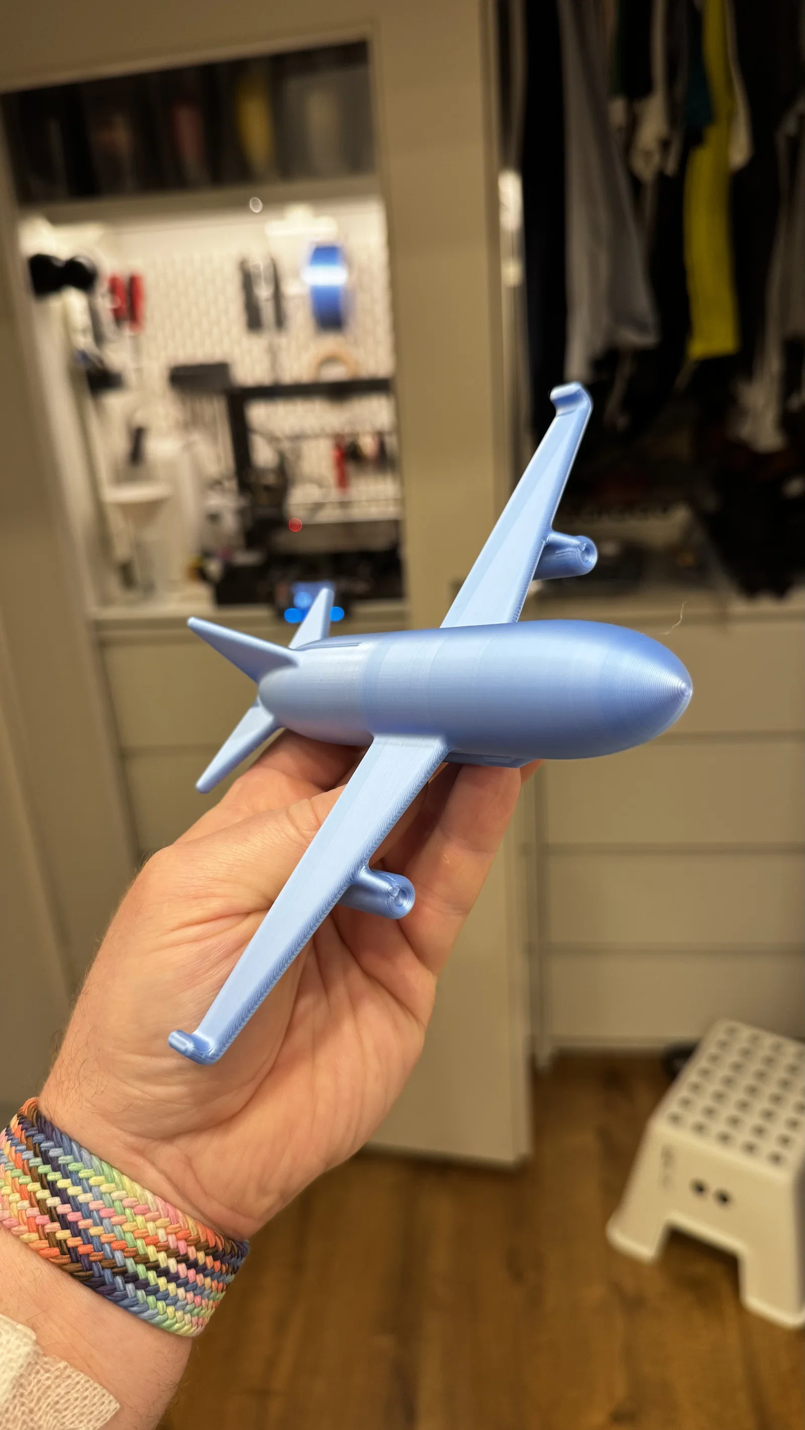 Mình muốn làm một món đồ chơi cho con mà không sợ bị mau hư nên mình đã tự thiết kế chiếc máy bay này. Mình in với thông số infill 30% và đầu phun (nozzle) 0.4mm là in ra đẹp hoàn hảo luôn. Đây là mẫu máy bay hư cấu do mình tự sáng tạo ra nhé.