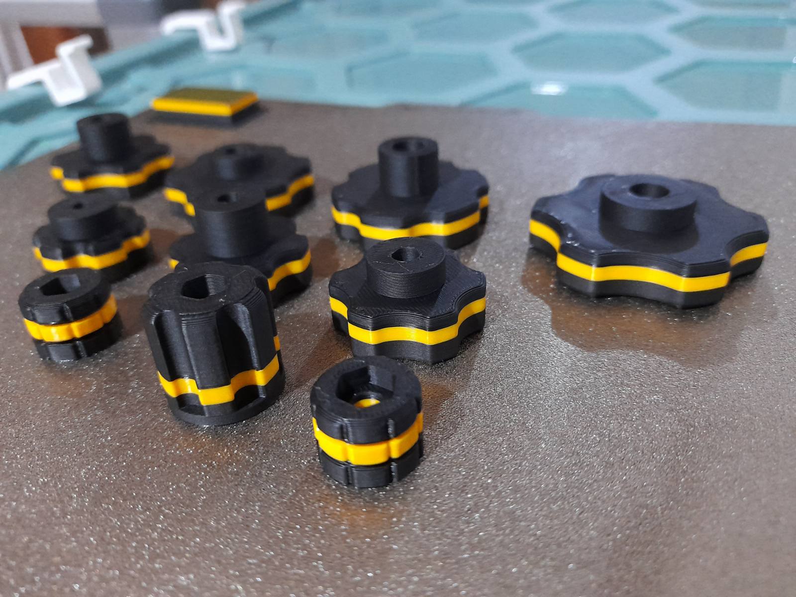 Trong xưởng mộc, tụi mình thường cần các loại núm vặn để hoàn thiện các món đồ gá (jigs). Mấy món này mua ngoài tiệm thì đắt quá, nên mình quyết định tự in bằng máy in 3D Bambulab A1 của mình luôn.