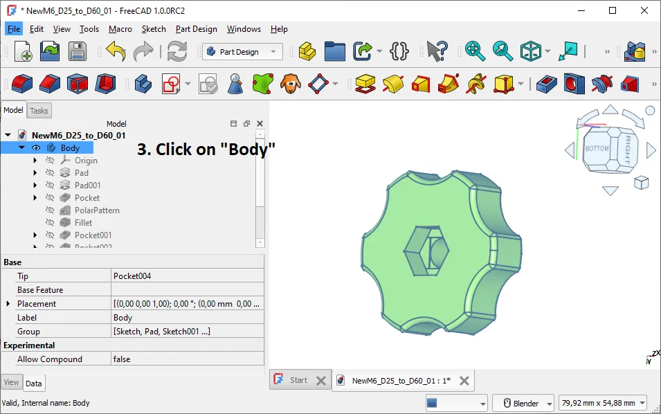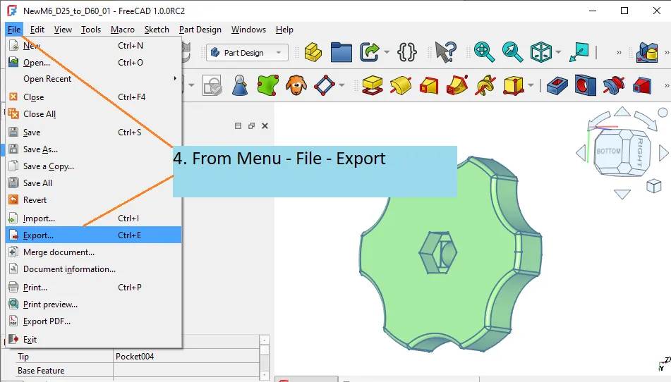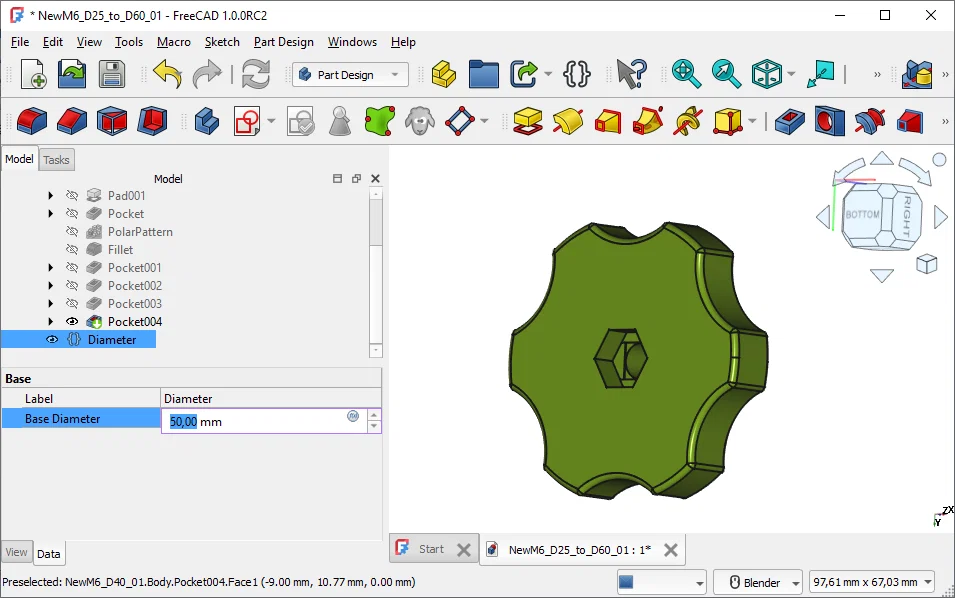 Mình có đính kèm các file FreeCAD cho các loại núm M5, M6, M8 để anh em dễ dàng chỉnh sửa đường kính phần đế. Mọi người xem hướng dẫn trong các hình bên dưới nhé. Anh em cần cài đặt phần mềm FreeCAD trên máy tính. FreeCAD là phần mềm mã nguồn mở và hoàn toàn miễn phí.