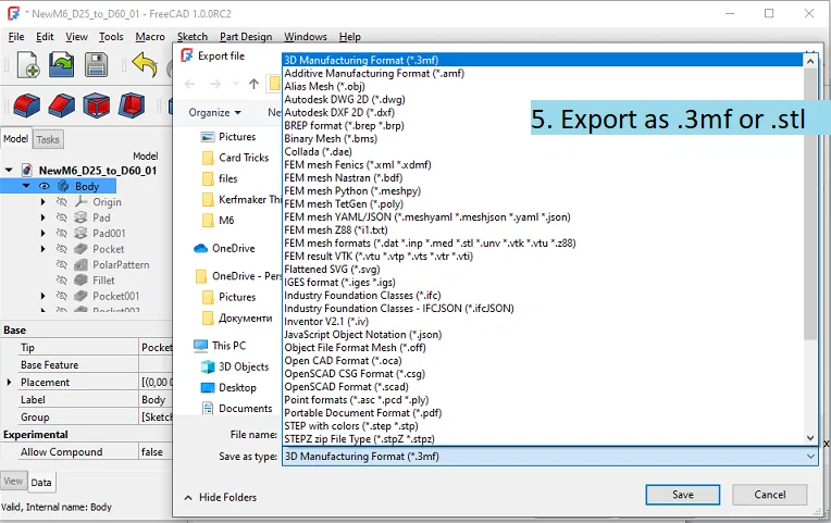 Nếu đã ưng ý với kích thước mới, anh em chọn vào phần “Body” rồi vào Menu - Export. Chọn định dạng file phù hợp cho máy in của bạn (thường là .3mf hoặc .stl).