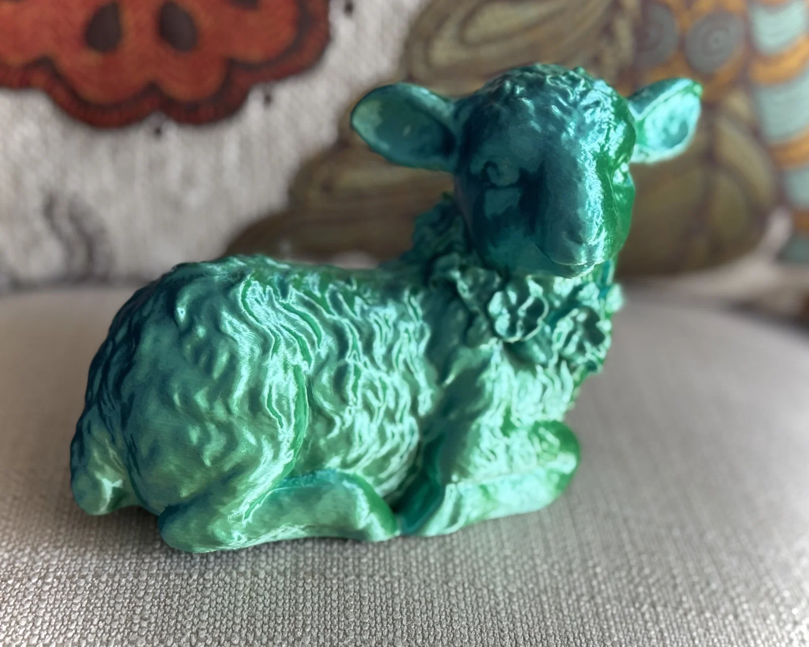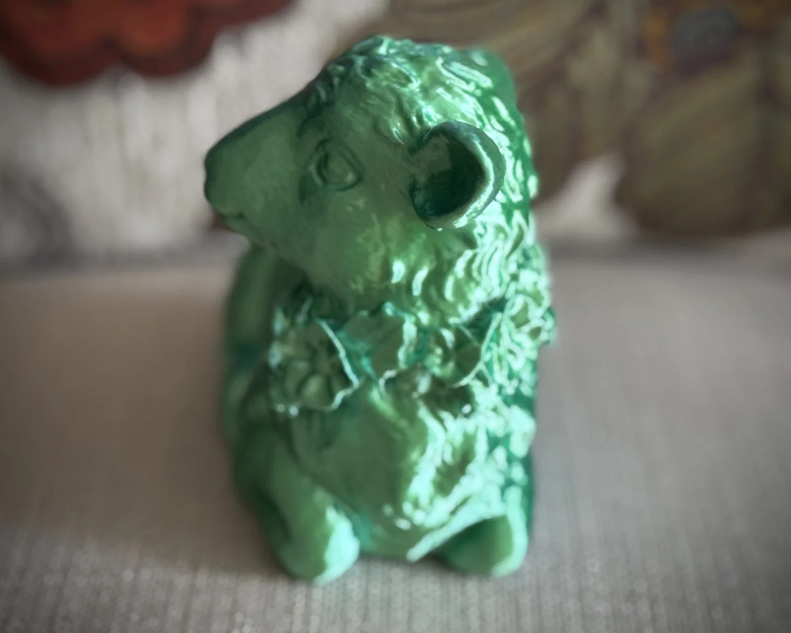 Mình đã dùng Poly.cam để scan lại bức tượng một chú cừu con dễ thương đang đeo vòng hoa, trông cực kỳ bình yên.