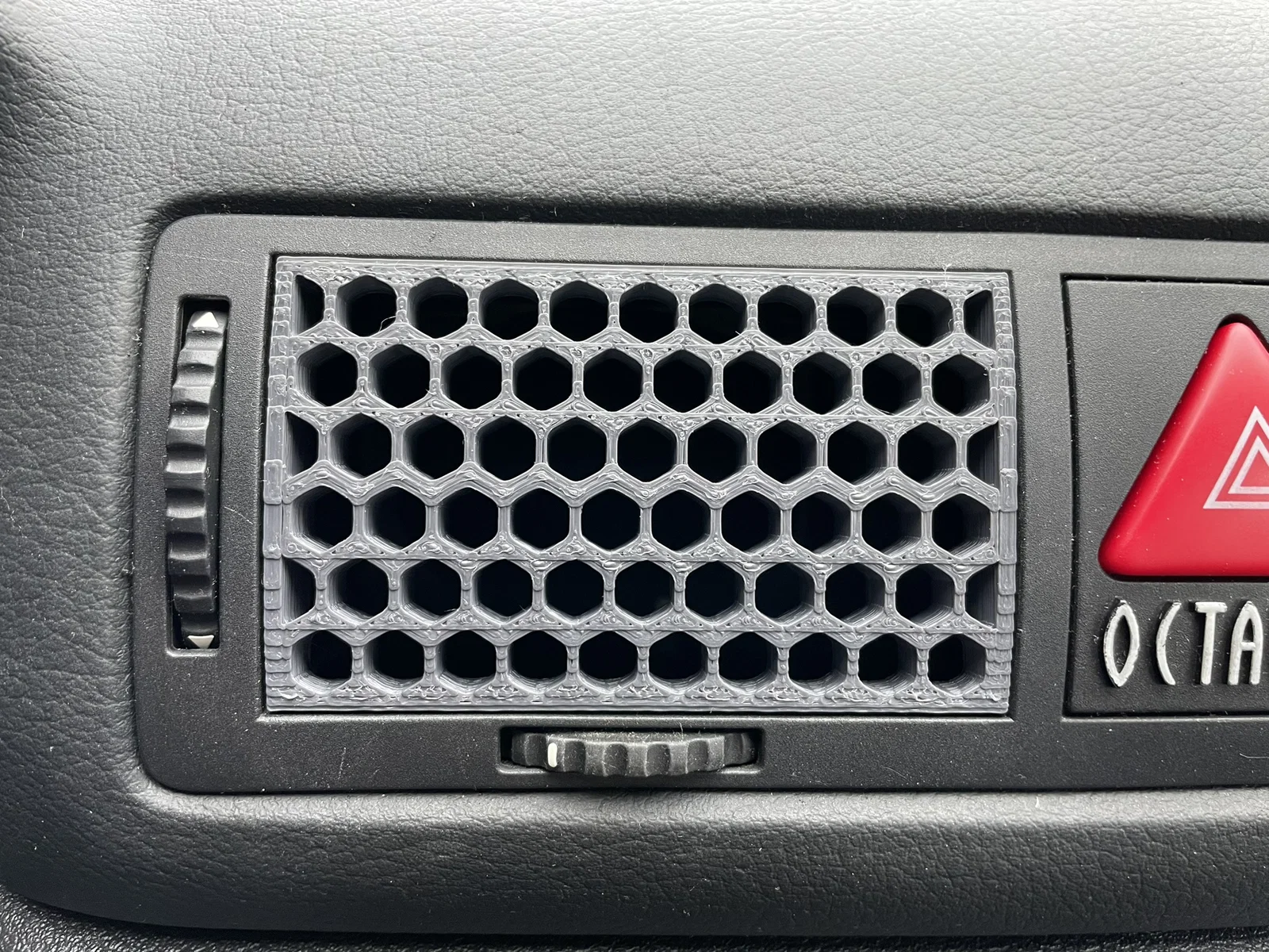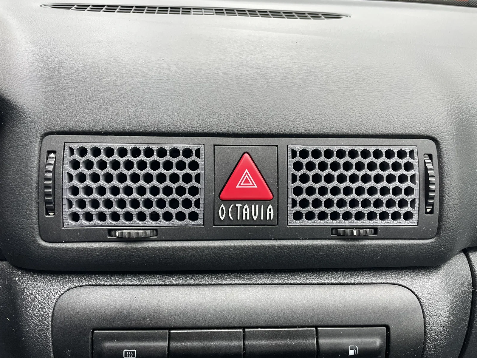 Bạn đang sở hữu một chiếc xe Octavia 1 đời cũ và muốn làm mới không gian nội thất của mình một cách tinh tế? Mẫu thiết kế mặt lưới thông gió (ventilation grille) theo phong cách tổ ong này là giải pháp nâng cấp cực kỳ ấn tượng, mang lại vẻ ngoài thể thao và hiện đại hơn so với mặt lưới nguyên bản đã cũ kỹ hoặc bị hỏng hóc. Sản phẩm này không chỉ đơn thuần là chi tiết trang trí, mà còn được thiết kế để lắp đặt vừa vặn hoàn hảo vào vị trí khe gió trung tâm trên bảng táp-lô của xe, giúp không gian nội thất trông sắc sảo và thẩm mỹ hơn hẳn.