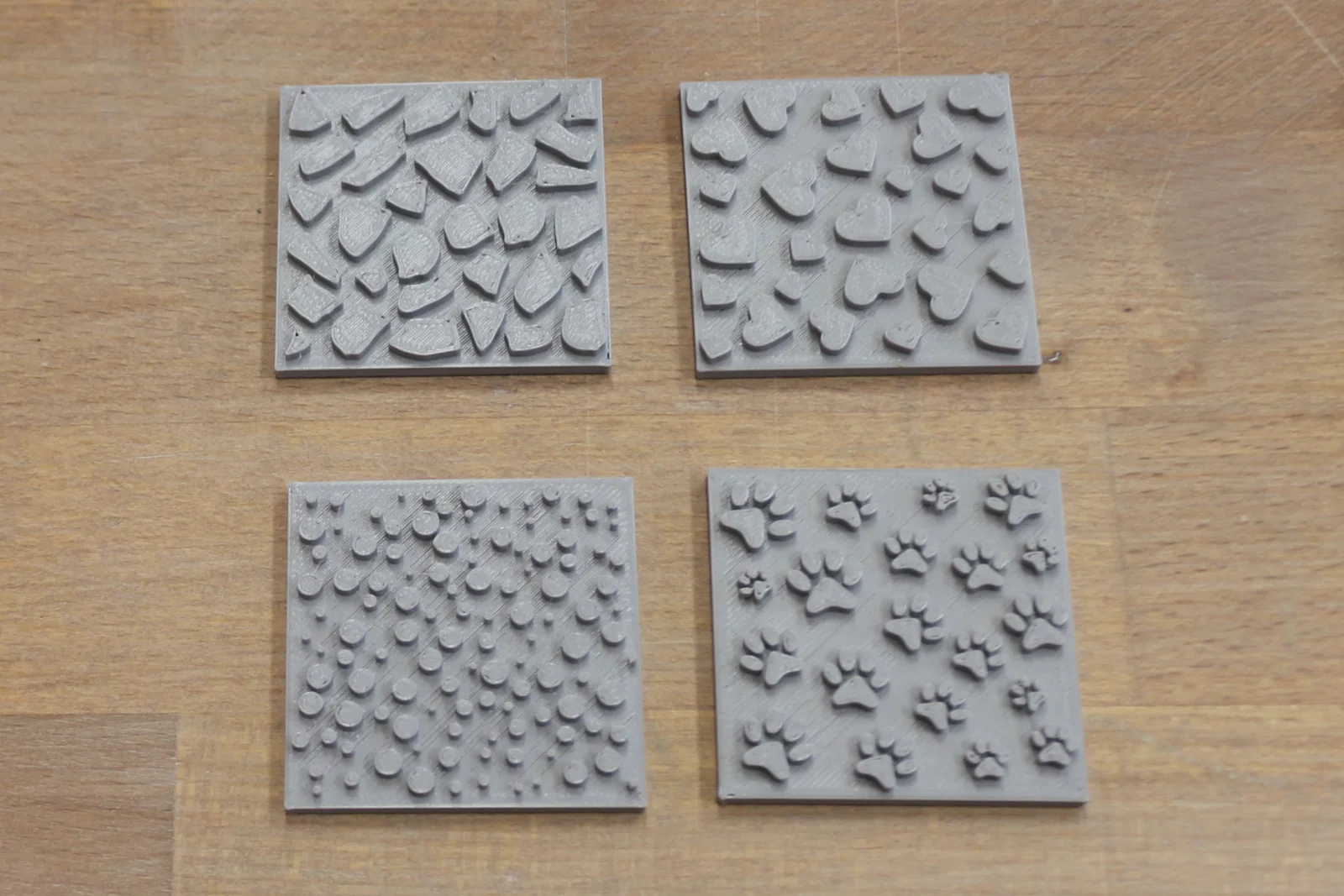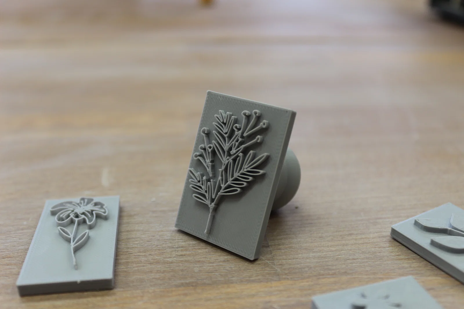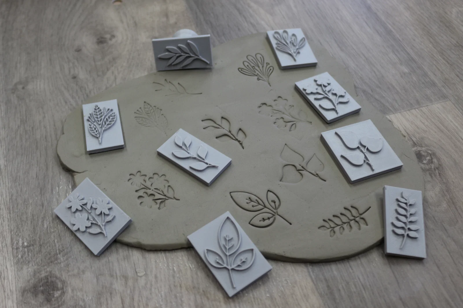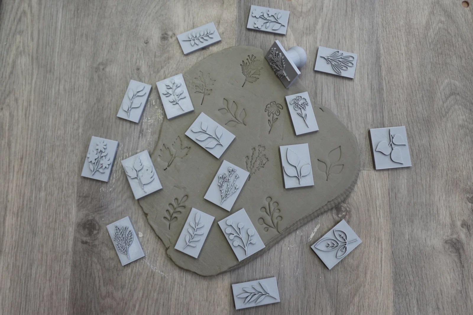Trong quá trình in, bạn cần tạm dừng máy ở lớp 1.4 mm để chèn các viên nam châm tròn kích thước 5 mm × 1 mm vào, đảm bảo sự liên kết chắc chắn và ổn định giữa các bộ phận. Bộ con dấu có nhiều thiết kế đa dạng như họa tiết hoa lá, hình trái tim, dấu chân thú cưng hoặc hình giọt nước, giúp bạn thỏa sức sáng tạo trong việc trang trí các sản phẩm gốm.