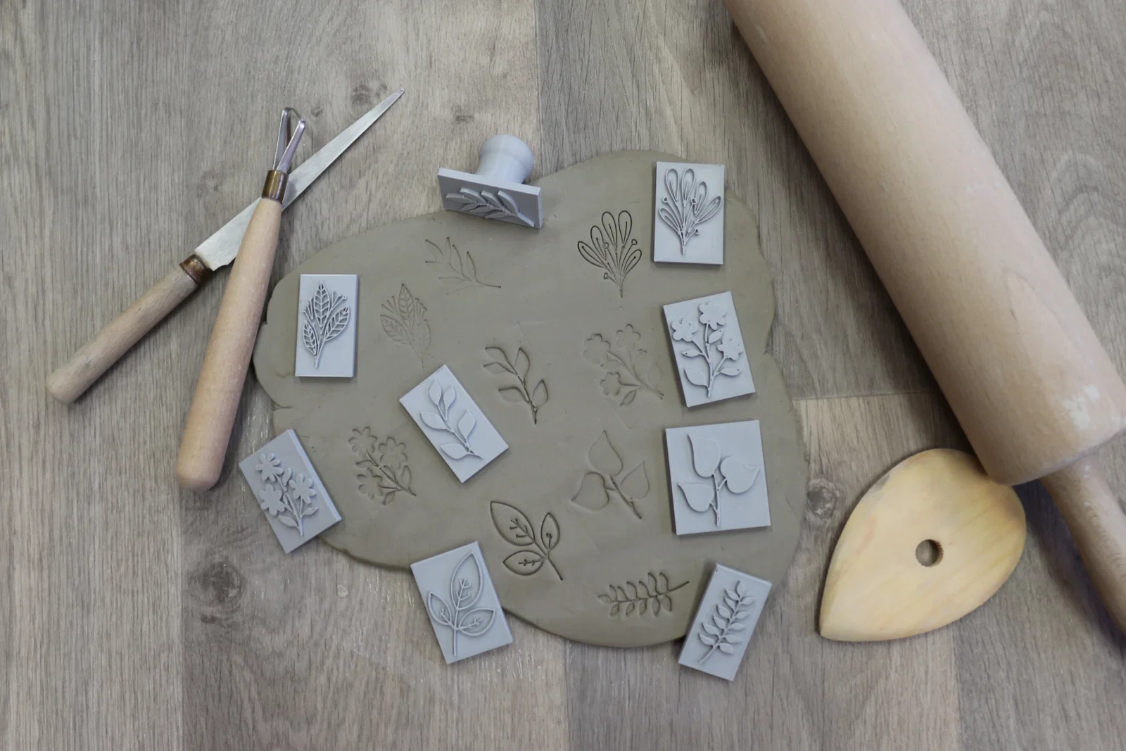 Bộ con dấu gốm sứ tiện dụng với cơ chế nam châm linh hoạt, cho phép bạn dễ dàng thay đổi nhiều họa tiết như hoa lá, trái tim, dấu chân thú cưng. Sản phẩm lý tưởng để tạo điểm nhấn nghệ thuật độc đáo trên bề mặt đất sét.