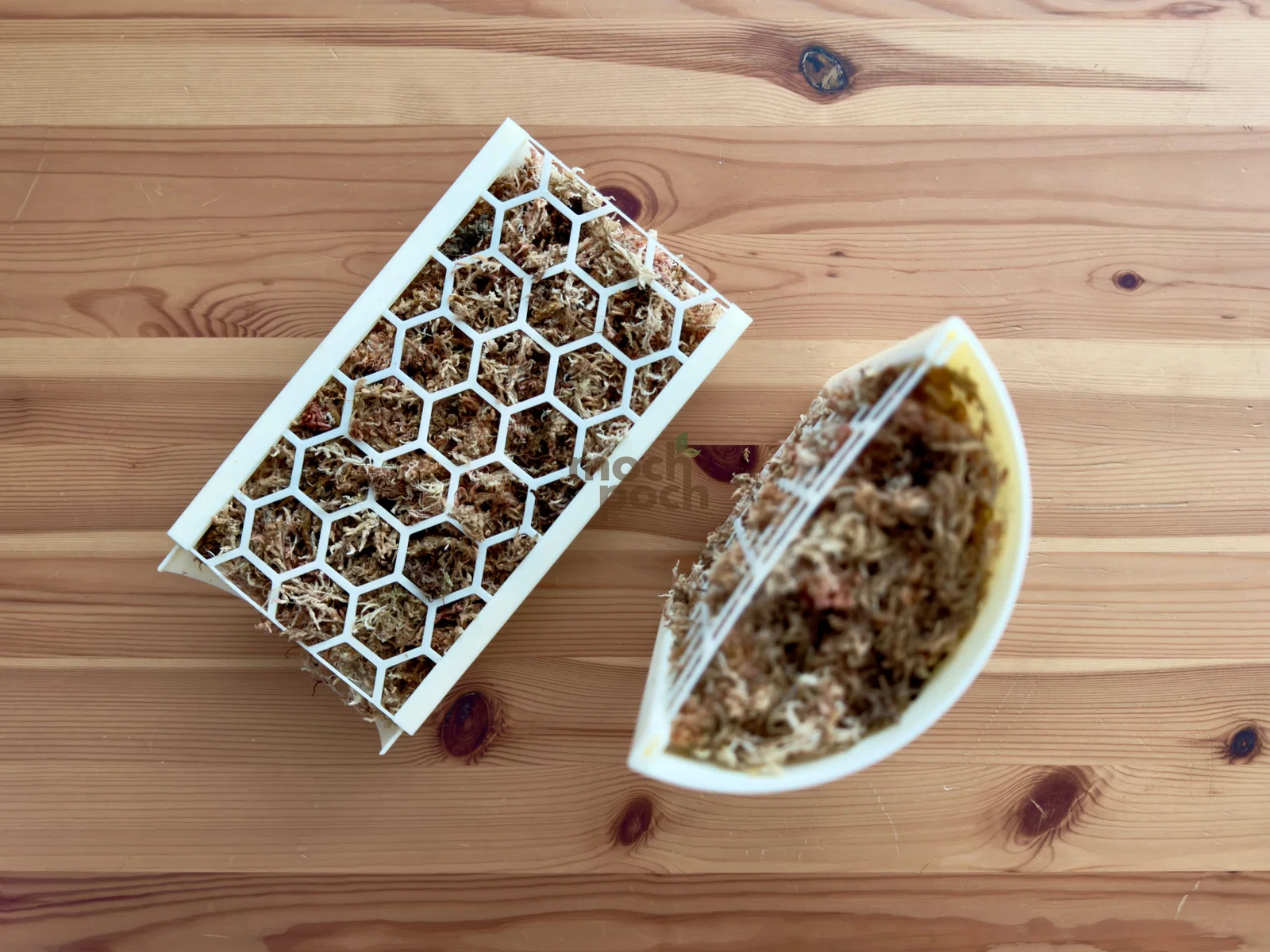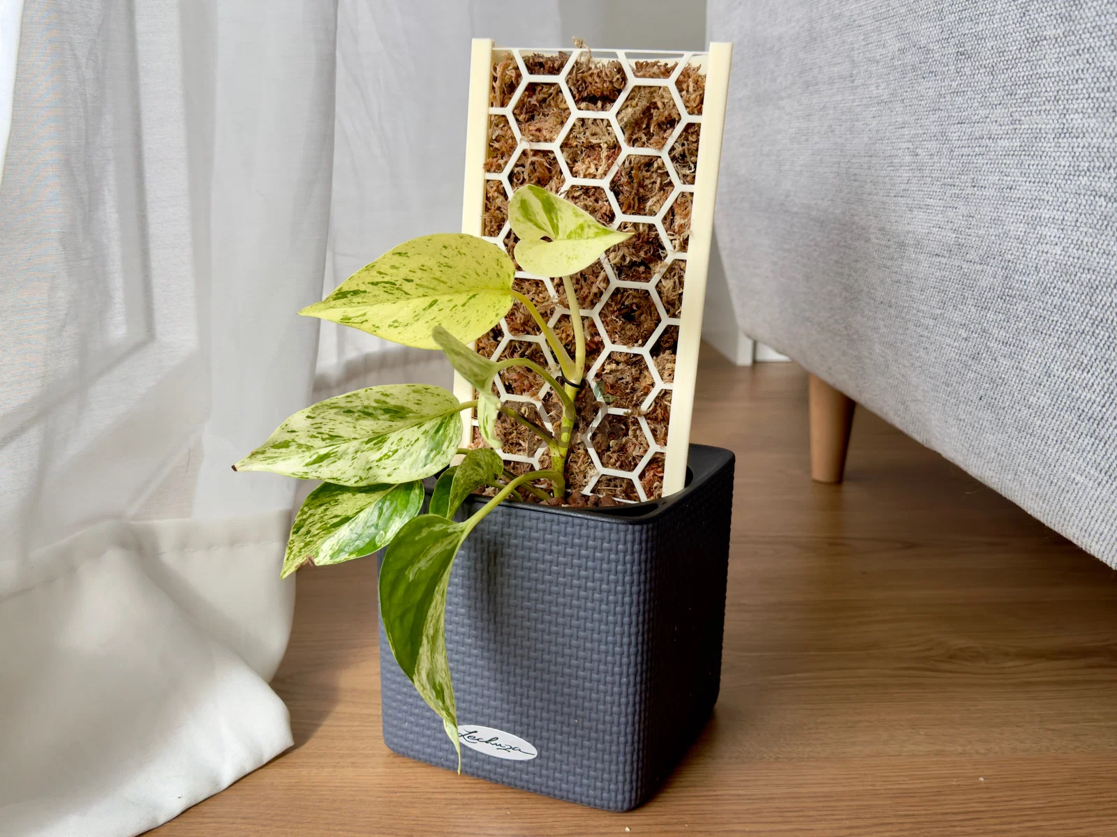 Thiết kế này được làm để vừa với chậu Lechuza Cube 14, vốn là "nhà" của hầu hết các loại cây leo mình đang trồng. Tuy nhiên, nó vẫn sẽ vừa với các loại chậu có đường kính từ 13cm trở lên.