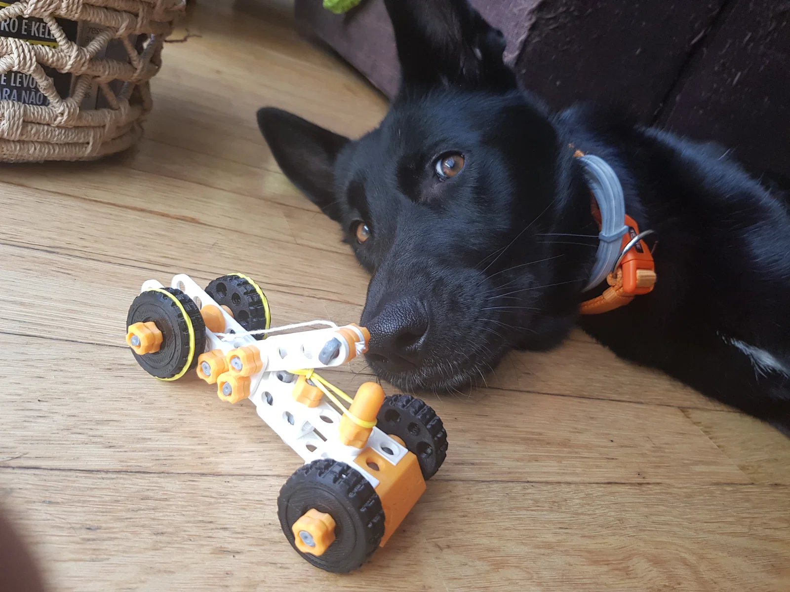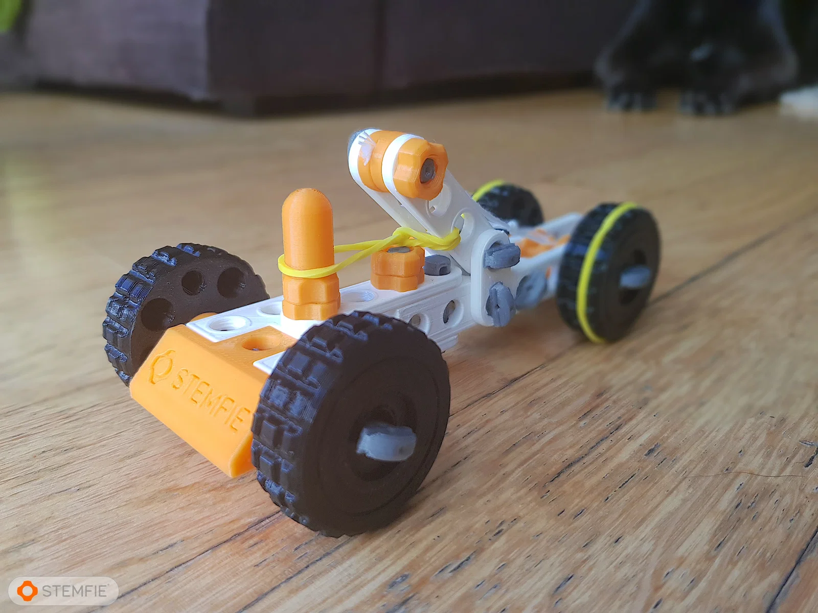Đây là chiếc xe đồ chơi chạy bằng dây thun được lắp ráp từ các bộ phận thuộc hệ thống xây dựng Stemfie3D mới có thể in 3D được.