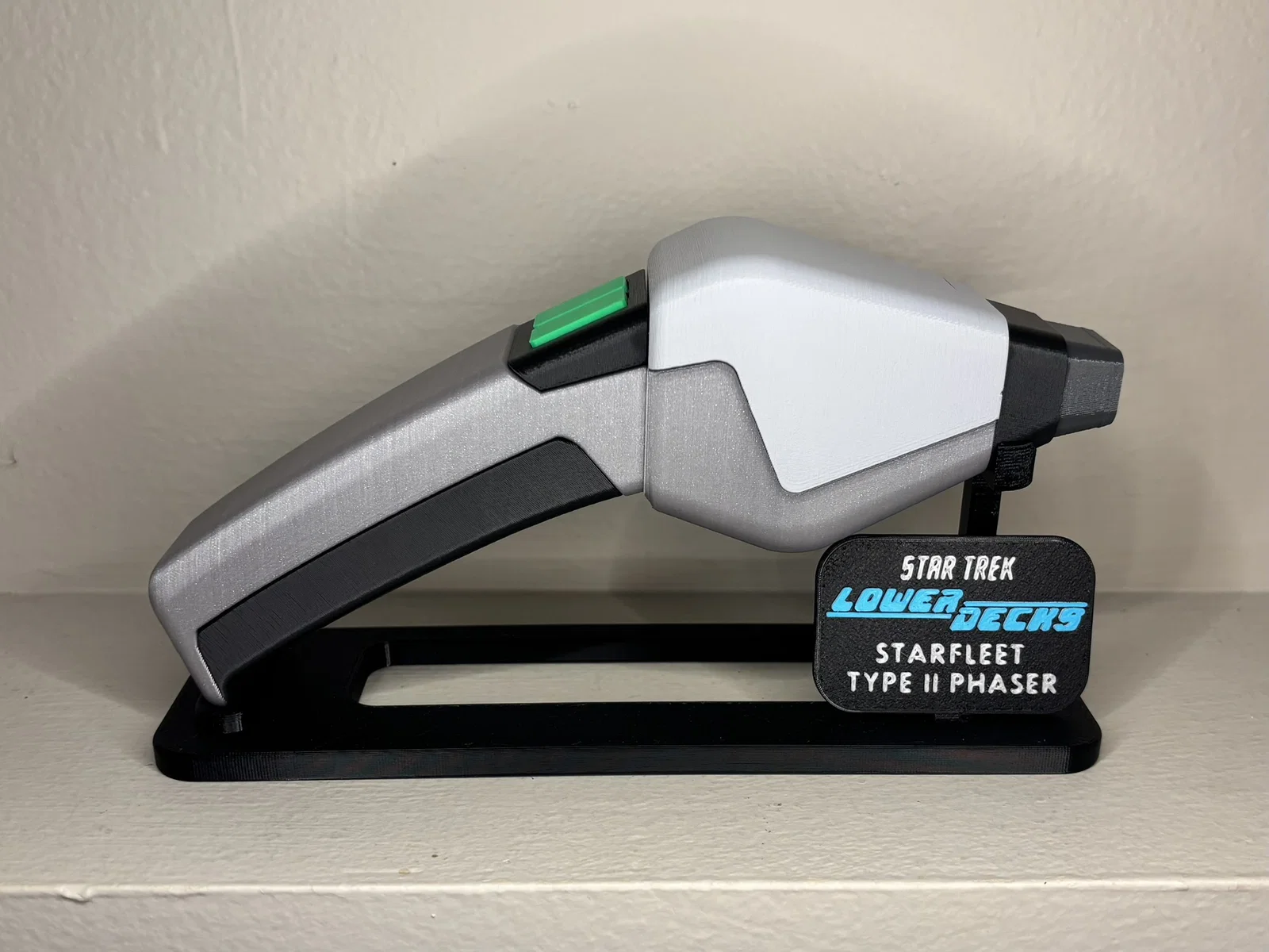 Cùng tham gia với phi hành đoàn tàu USS Cerritos với bộ kit mô hình phaser hoạt hình dễ in này. Thiết kế đi kèm đế trưng bày và bao đựng, rất phù hợp cho những bạn yêu thích cosplay Star Trek.