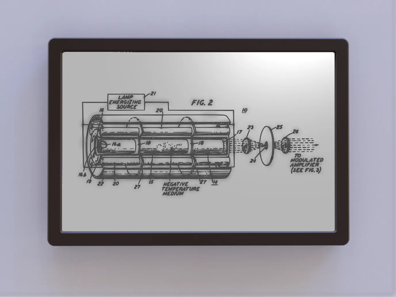 Màn hình nghệ thuật 2D cho bản vẽ bằng sáng chế của một laser sớm.
