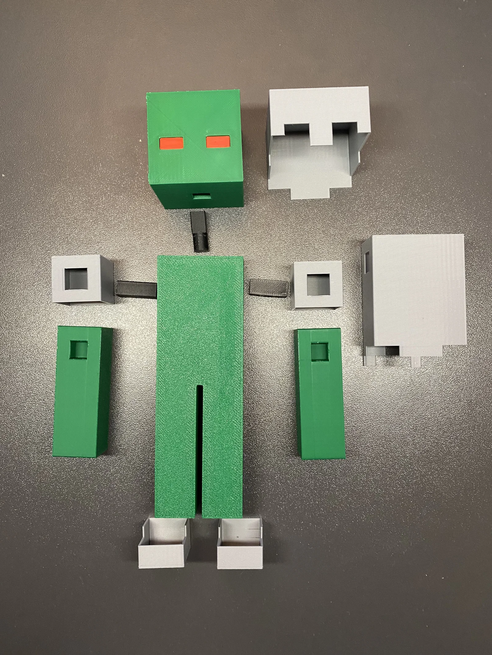 Hãy thử ngay mẫu Zombie này! Mô hình rất dễ lắp ráp. Bạn có thể tải xuống file .stl (mỗi phần nằm trong một file riêng). Đây là lựa chọn tuyệt vời cho những ai yêu thích thế giới Minecraft và muốn tự tay in 3D nhân vật này.
