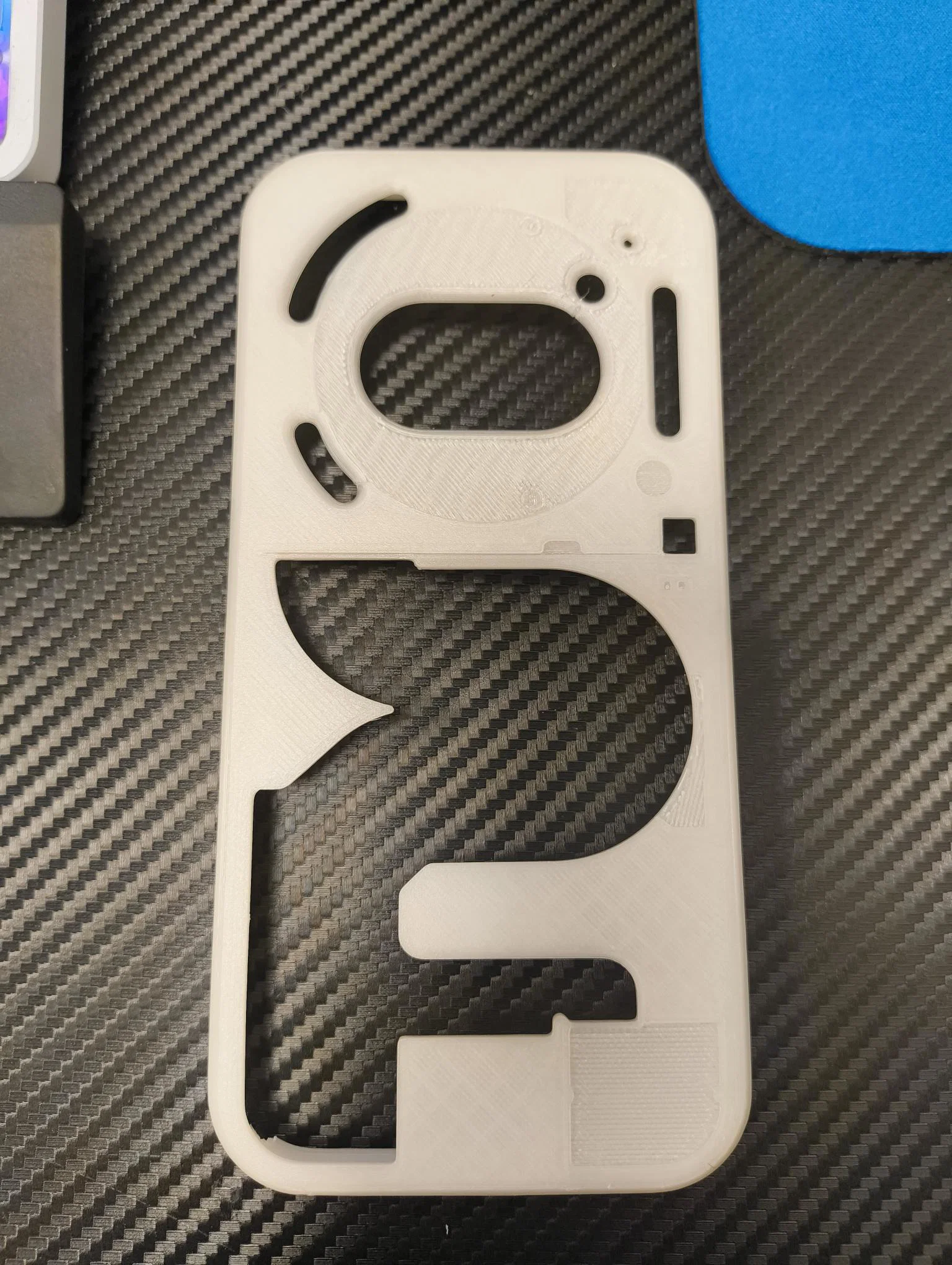 Bản remix từ mẫu ốp lưng Nothing Phone 2a của @DrCox_1746174. Tôi đã thêm các đường cắt và vết lõm để mô phỏng thiết kế gốc của điện thoại. Ngoài ra, phần cắt quanh nút âm lượng và nút nguồn cũng được làm rộng hơn giúp bấm dễ dàng hơn. Mẫu này mình đã in bằng nhựa Glow in the Dark PLA.