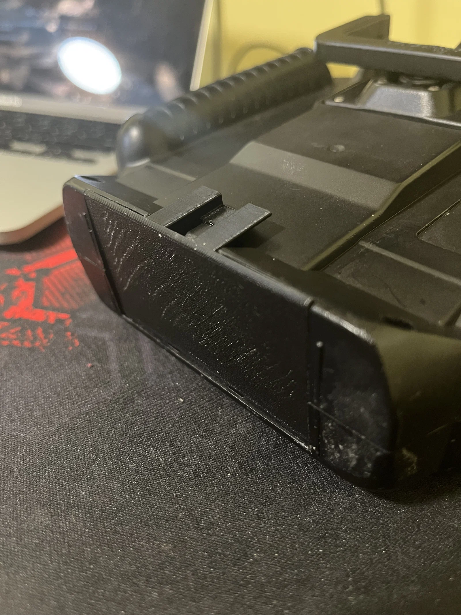 Cái nắp pin của mình bị gãy mất phần chốt bản lề, nên mình đã tự thiết kế lại món này! Mình làm cho nó thấp hơn bề mặt của tay cầm một chút để dễ in trên mặt phẳng hơn.