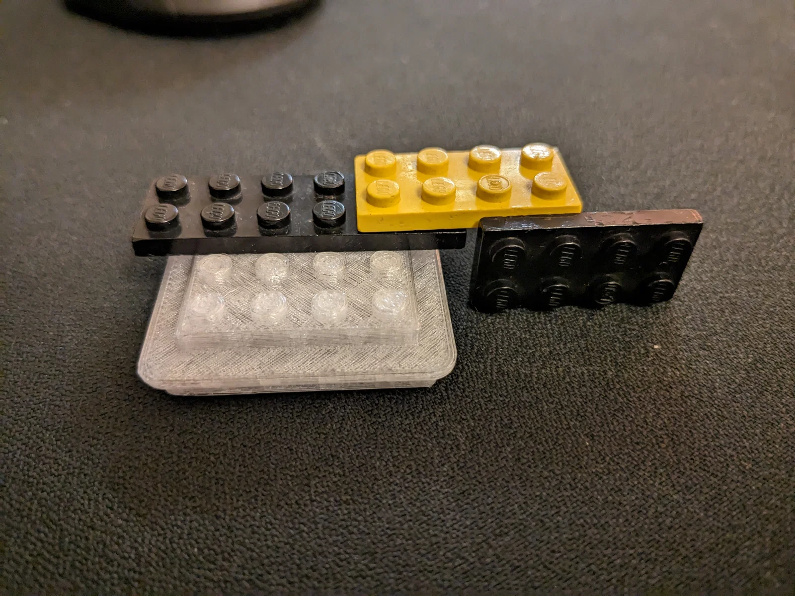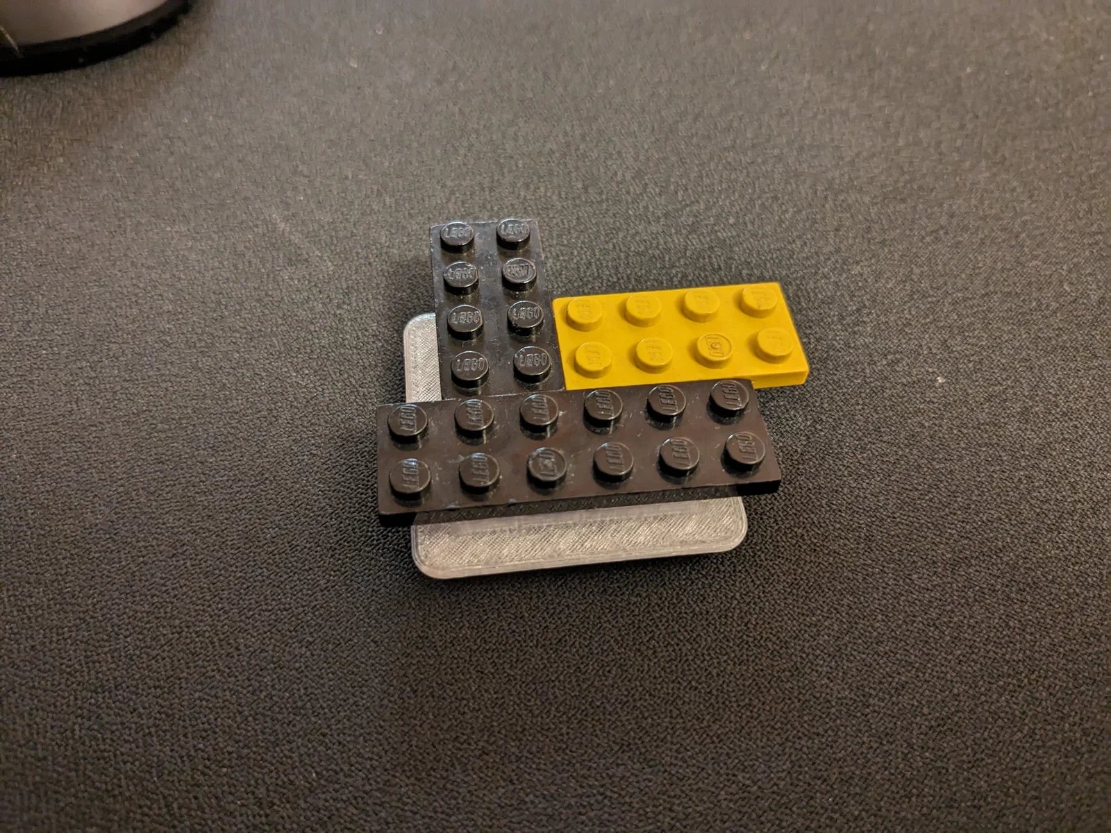 Hai bộ đặt cạnh nhau không thể nối bằng một viên gạch LEGO đơn lẻ. Lý do là vì khoảng cách giữa các tâm chốt của LEGO là 8mm, trong khi Gridfinity thường là bội số của 7mm. Nên tôi đoán là loại Gridfinity 4x1 có thể sẽ vừa (cái này tôi chưa thử).