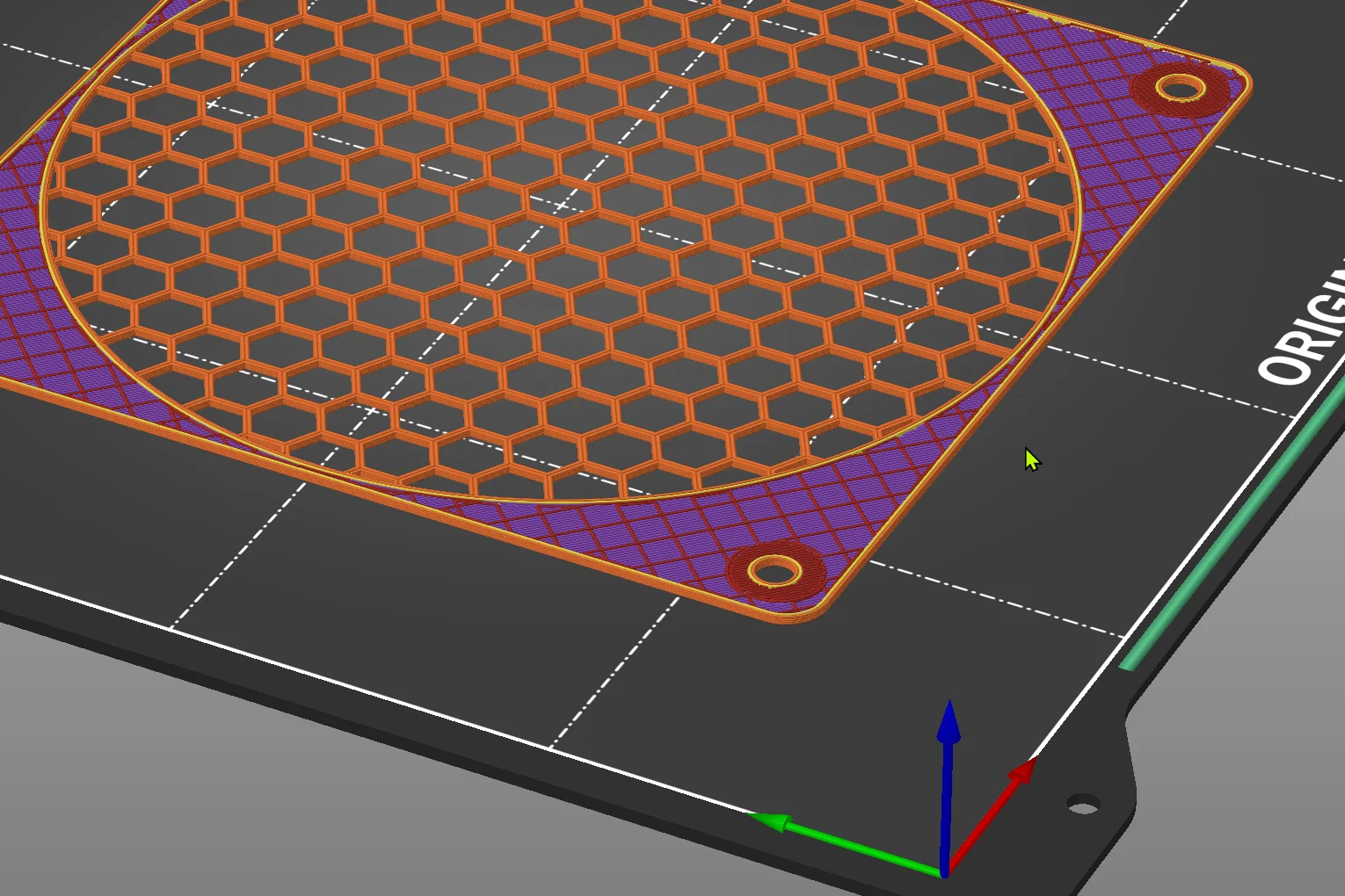 Mẫu lưới bảo vệ quạt 120mm bản remix với viền dày 3mm, lưới 1mm và các lỗ bắt vít được gia cố chắc chắn hơn, giúp tối ưu luồng gió và tăng độ bền cho sản phẩm khi lắp đặt.