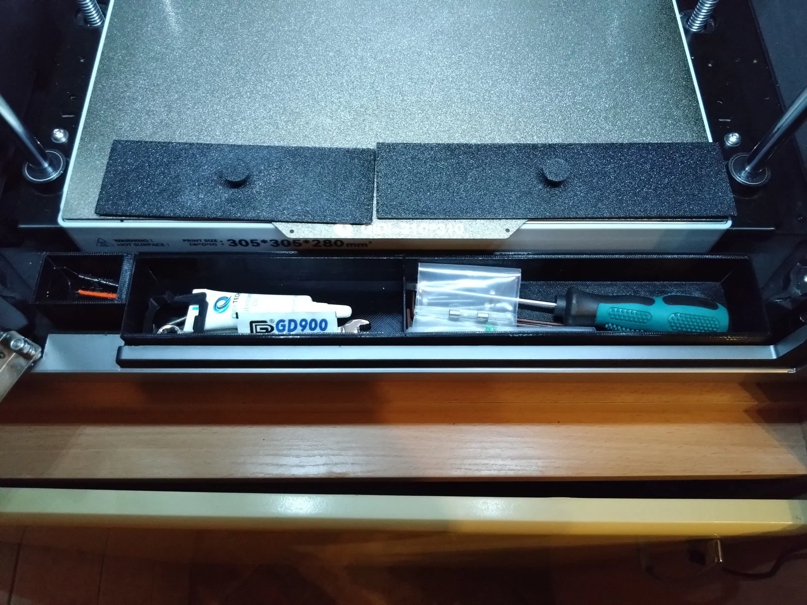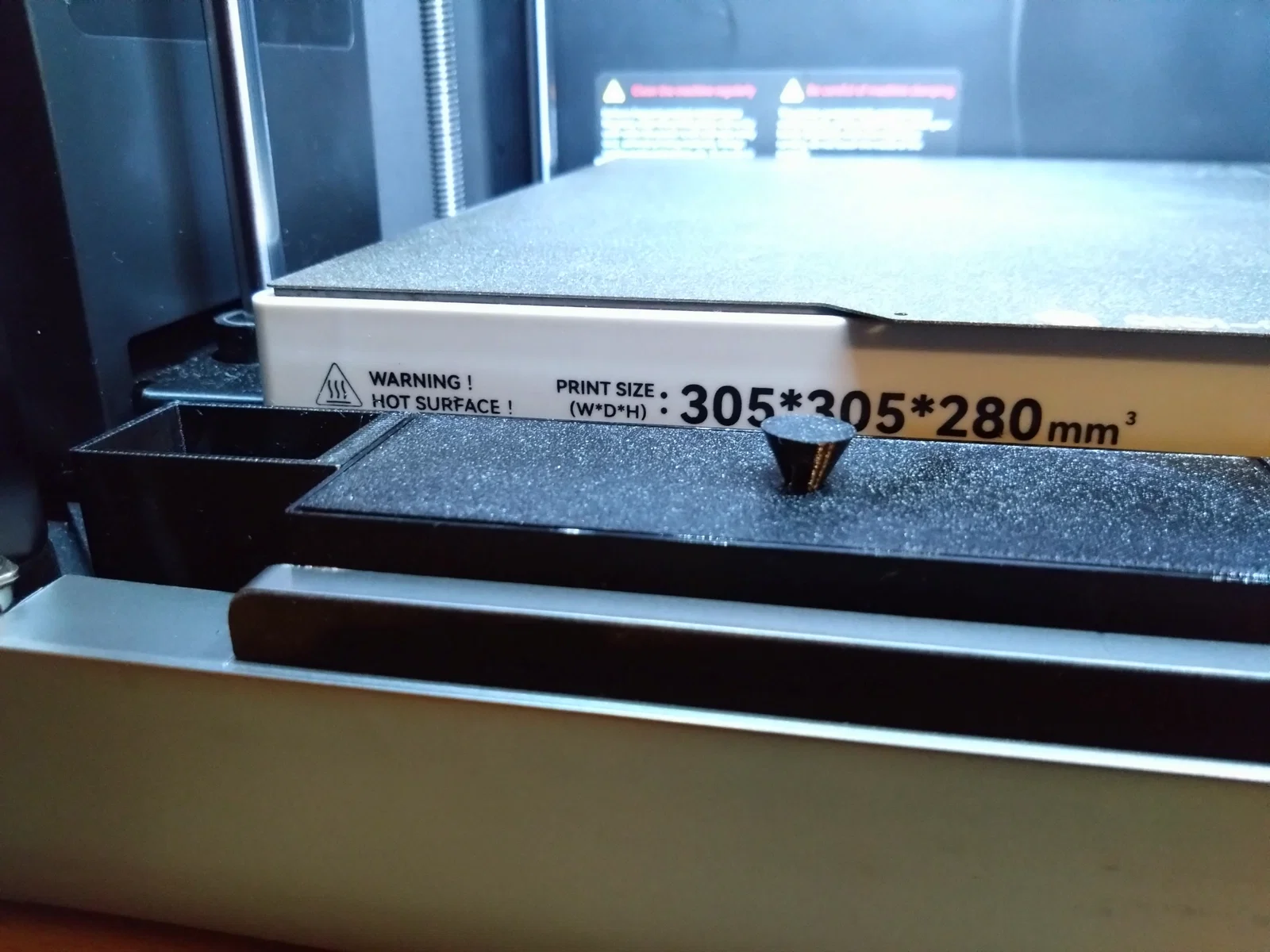 Tận dụng khoảng trống giữa cửa và bàn nhiệt máy in Qidi Plus 4 với bộ hộp đựng phụ kiện tiện lợi, đi kèm thùng rác nhỏ cho dây purge line và thiết kế chân cài chắc chắn chống rung lắc, dễ dàng tùy chỉnh qua file FreeCAD.