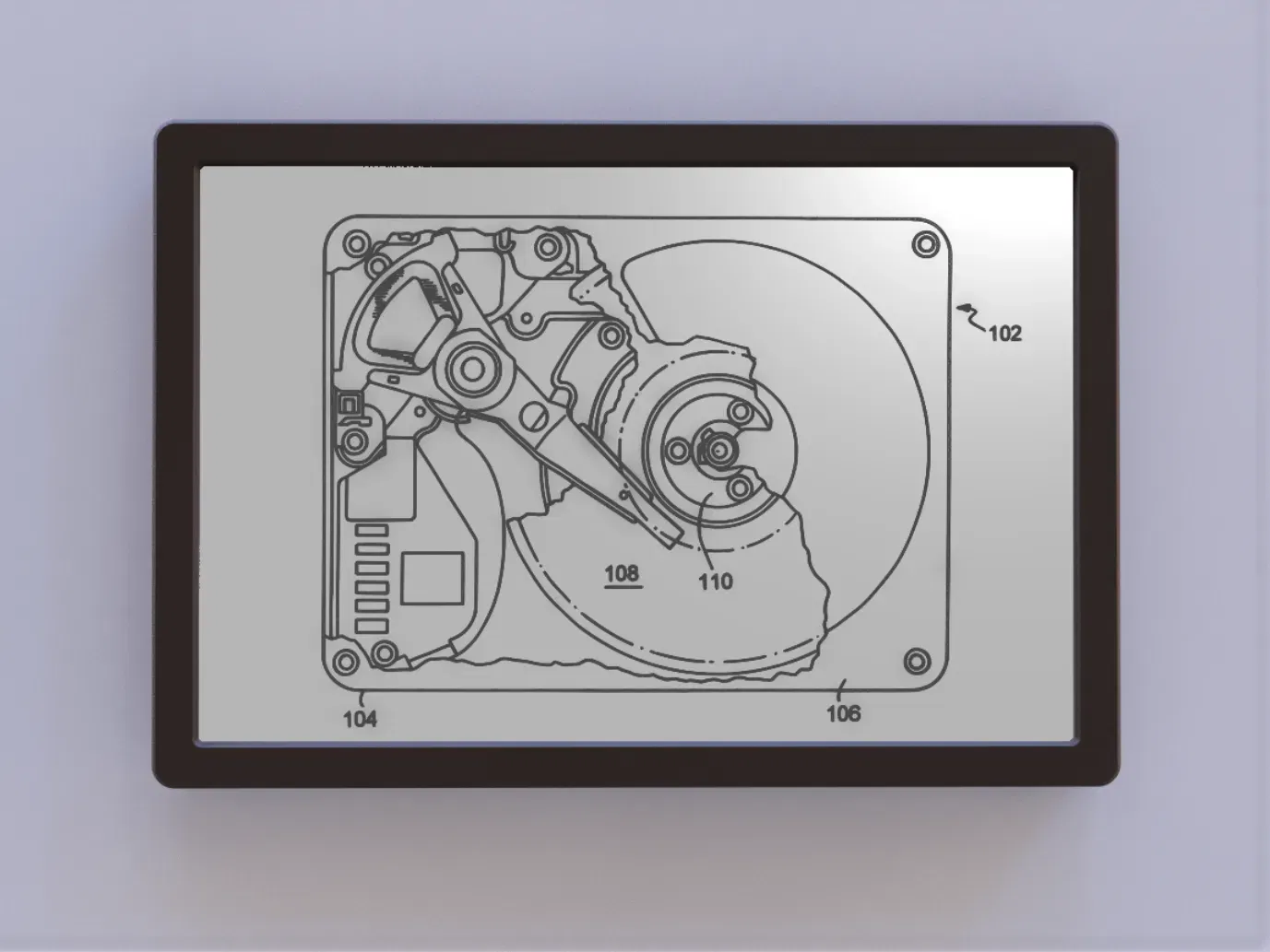 Màn hình nghệ thuật 2D cho bản vẽ bằng sáng chế của ổ đĩa cứng.