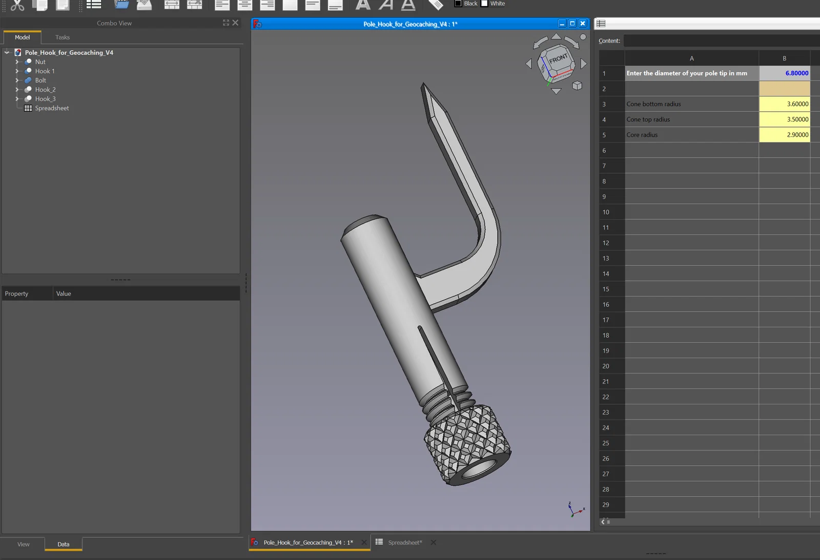 Mục tiêu của dự án này là tạo ra một hệ thống móc câu siêu nhẹ cho cần câu dùng trong bộ môn Biltema geocaching. Thiết kế này có tính tham số, giúp bạn dễ dàng tùy chỉnh kích thước để gắn vừa khít vào đầu cần câu của mình.