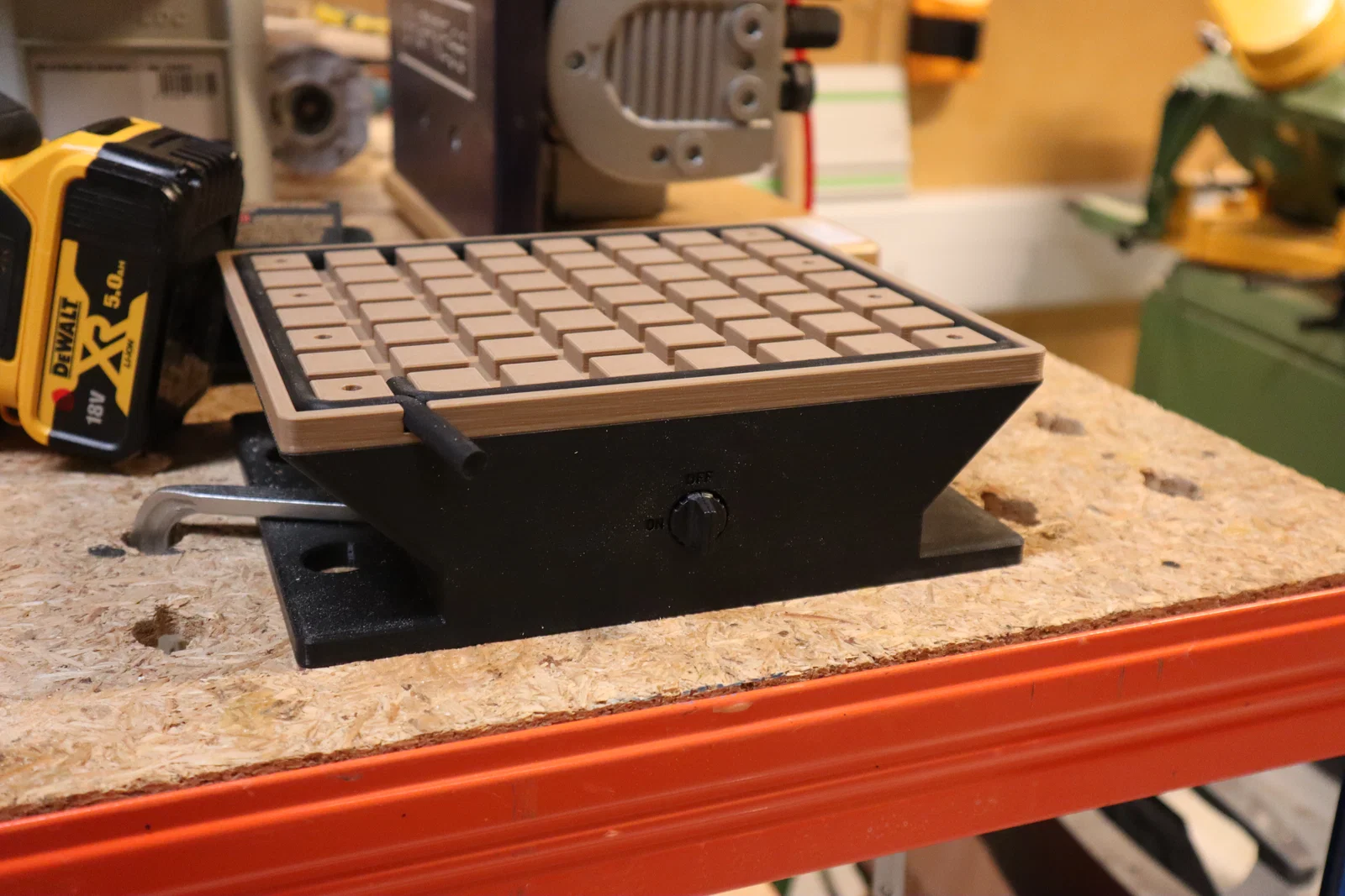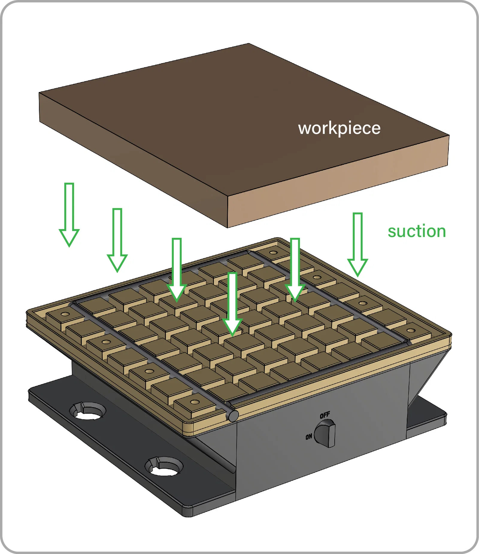 Mẫu kẹp hút chân không in 3D đơn giản, hỗ trợ gắn trên bàn Festool MFT. Thiết kế này cần sử dụng máy nén khí hoặc bơm chân không để vận hành hiệu quả. Mọi chi tiết lắp ráp và danh sách linh kiện đã được mình liệt kê đầy đủ.