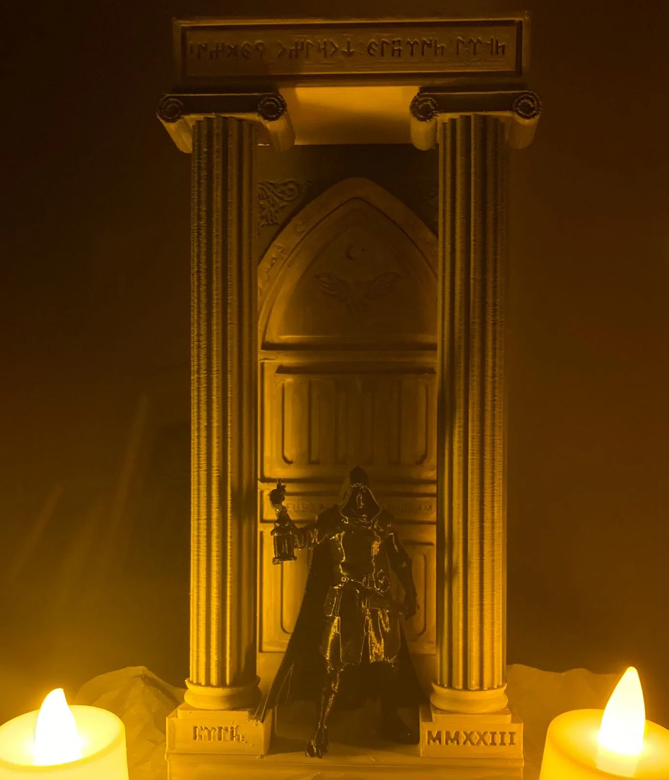 Việc kết hợp nhân vật sát thủ đặt trong khung cửa của một ngôi đền hoặc tòa kiến trúc cổ khiến mô hình trở thành món đồ trang trí tuyệt vời cho bàn làm việc, tủ kính hoặc kệ sách của bạn. Khi đặt trong môi trường thiếu sáng, mô hình càng trở nên nổi bật hơn, tạo ra một không gian huyền bí cực kỳ hút mắt. Đây chắc chắn là lựa chọn không thể bỏ qua cho những ai yêu thích các mô hình giả tưởng hoặc muốn thử thách khả năng in ấn và sơn vẽ chi tiết.